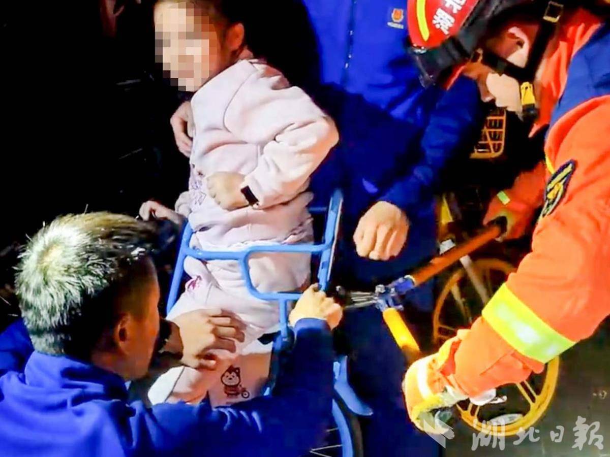 不到两分钟,座椅侧边的金属护栏便被剪断并顺利拆卸,女童被安全抱出。经消防员初步检查,女童身上未见明显外伤,确认并无大碍。