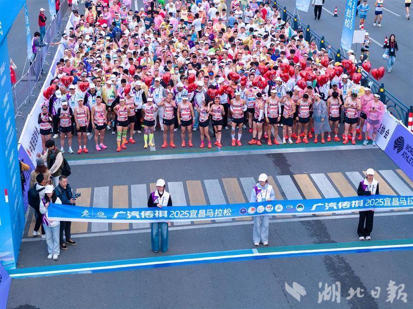 2025宜昌马拉松今早鸣枪,万余全马、半马跑者沿江开跑,滨江公园见证热血瞬间。(湖北日报全媒记者 夏晓君 摄)