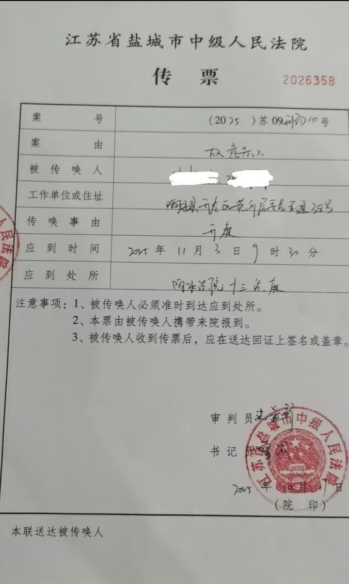 在江苏省盐城市中级人民法院发给张女士的开庭传票上,极目新闻记者看到,上面写的案由是“故意杀人”。