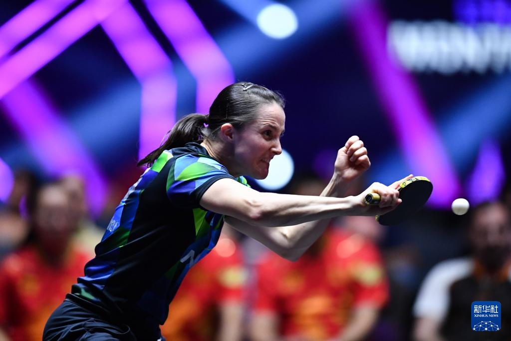 11月2日,德国选手沙宾·温特在比赛中回球。