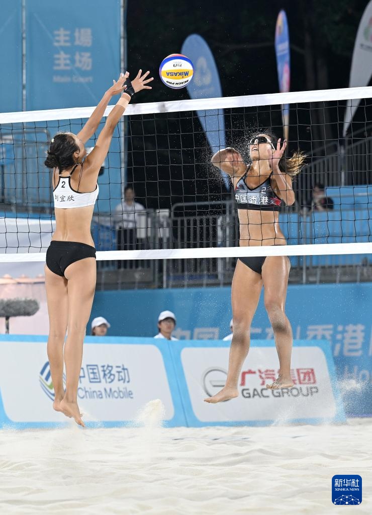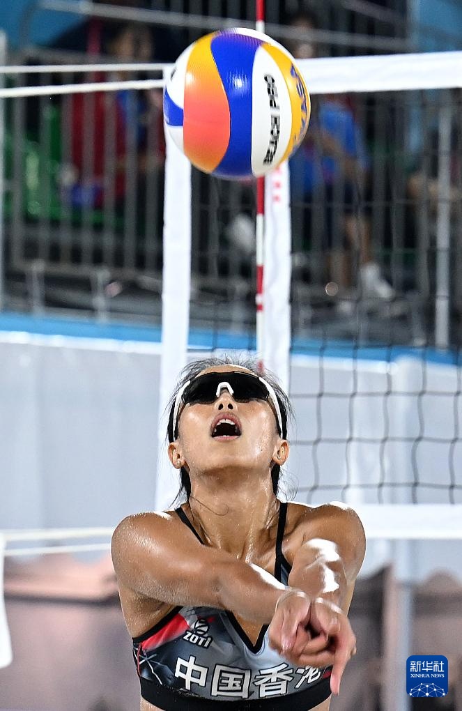 当日,在香港举行的第十五届全运会沙滩排球女子小组赛F组比赛中,香港队组合欧阳玮欣/袁廷芝2比0战胜辽宁队组合富宇菲/刘宜欣。