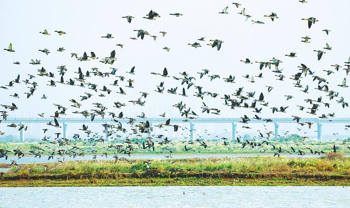 柏泉府河湿地提前迎来越冬候鸟