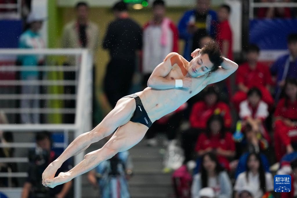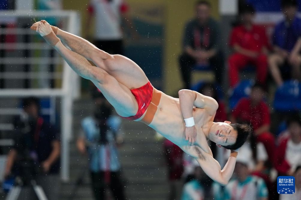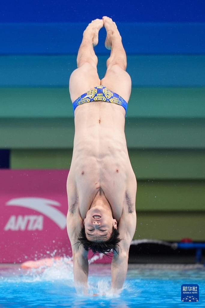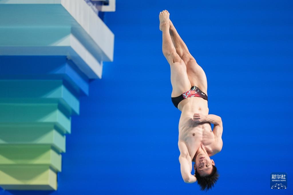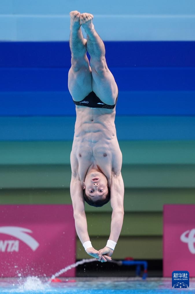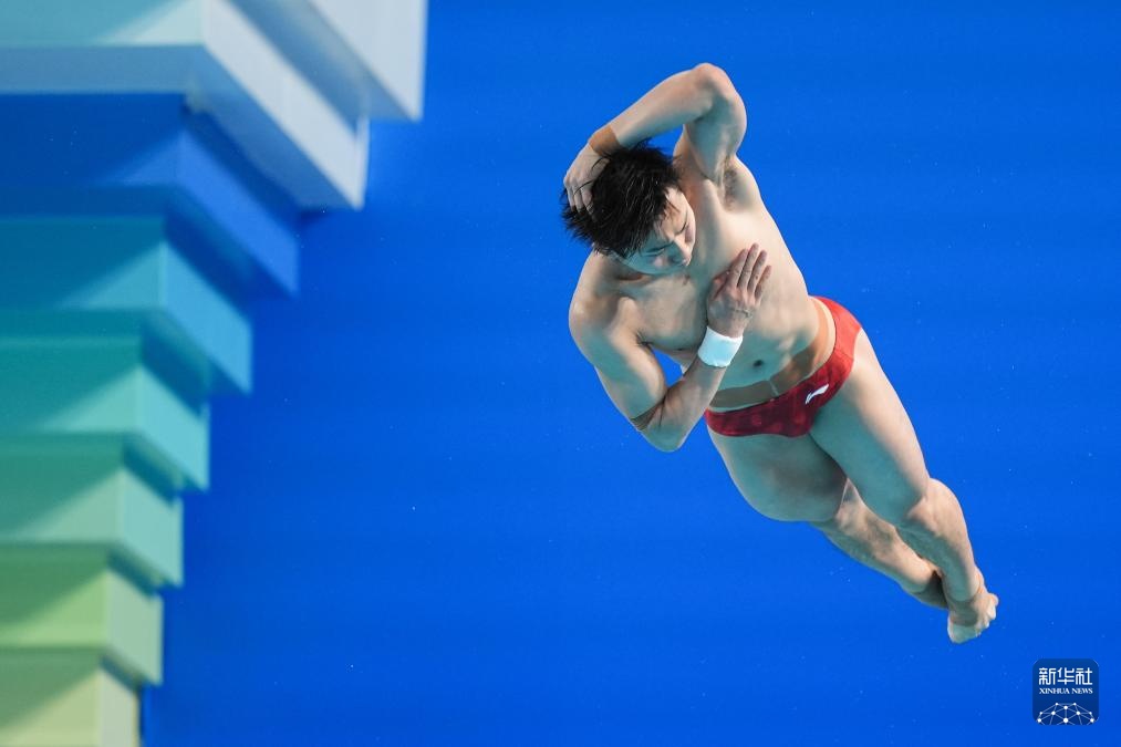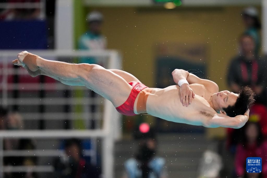 11月3日,湖北队选手郑九源在男子三米板比赛中。