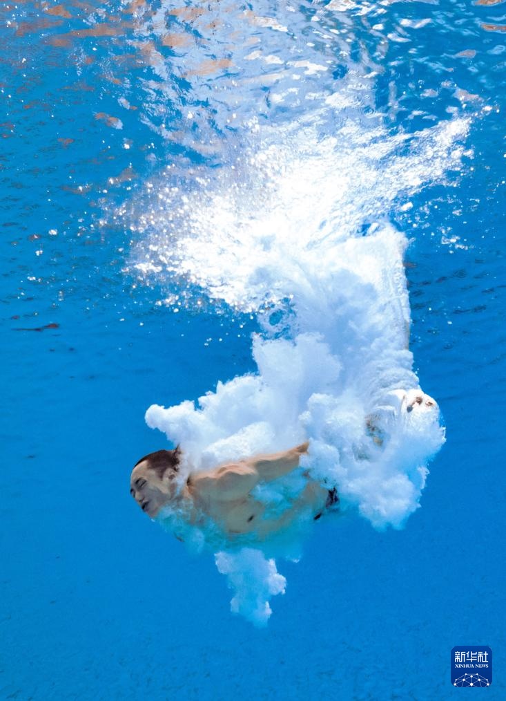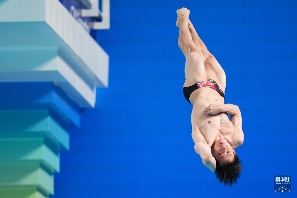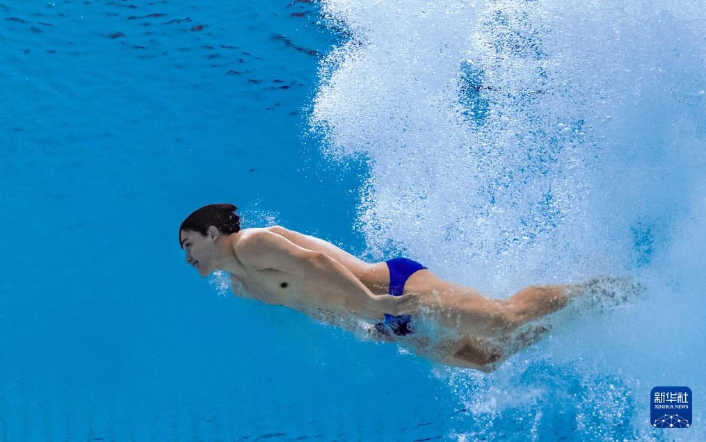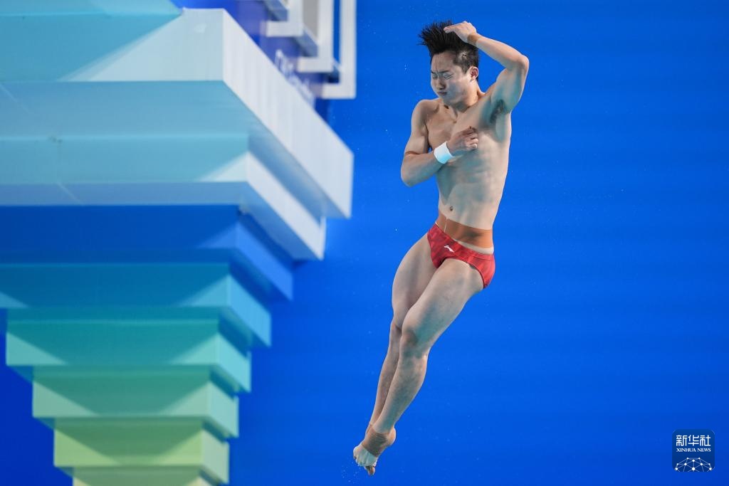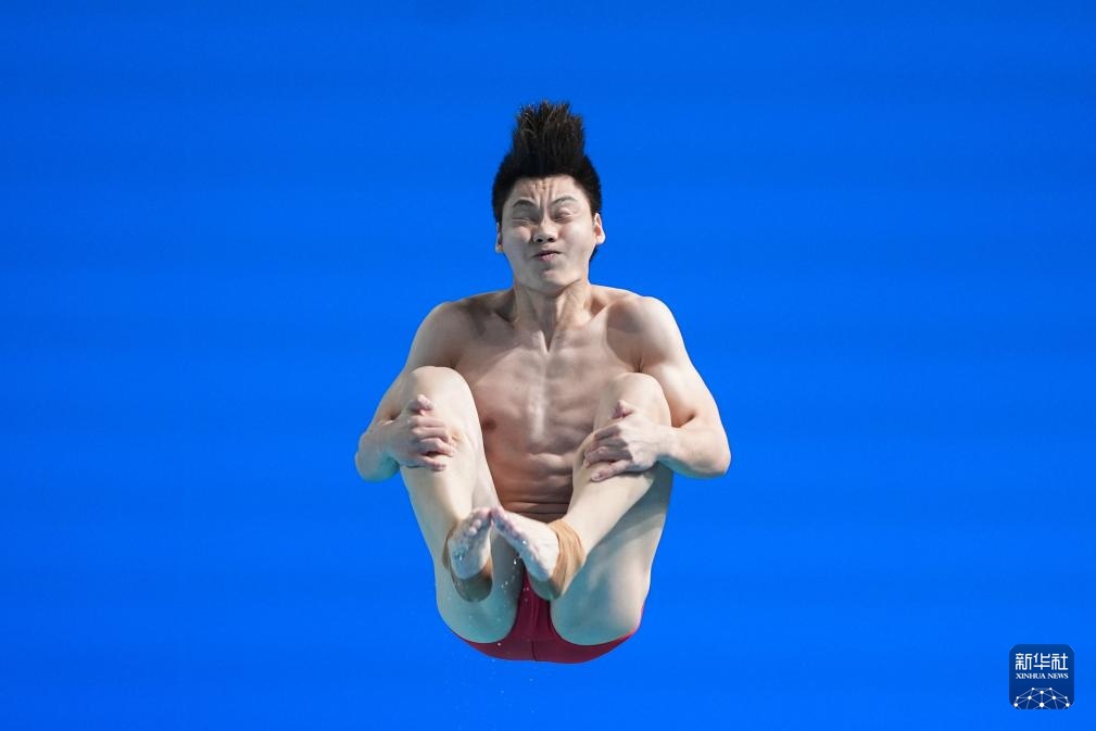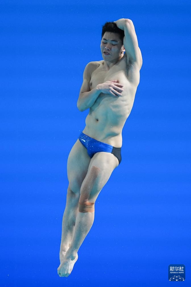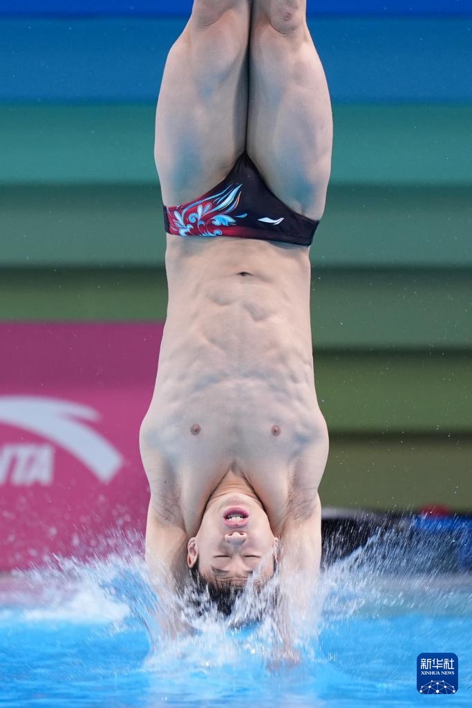 11月3日,湖北队选手郑九源在男子三米板比赛中。
