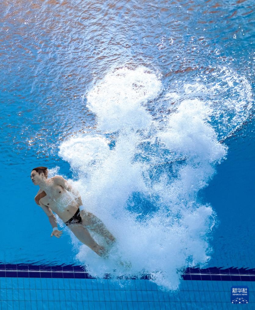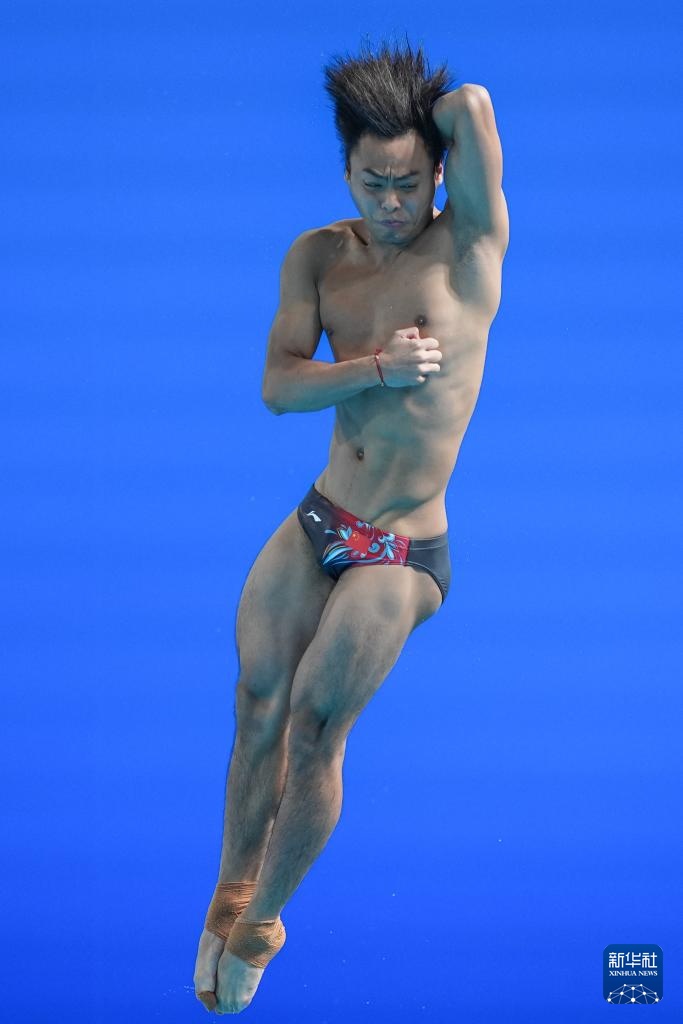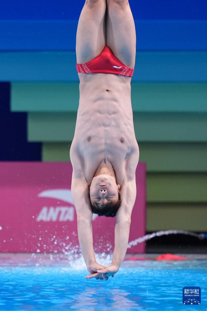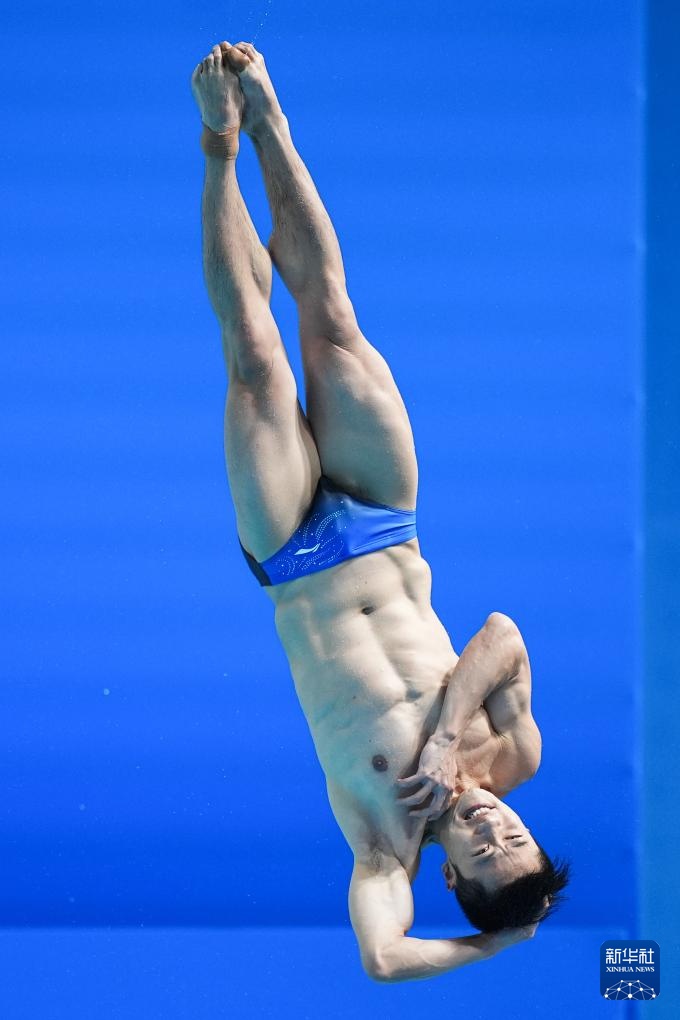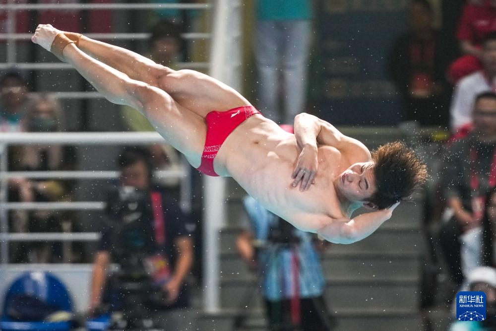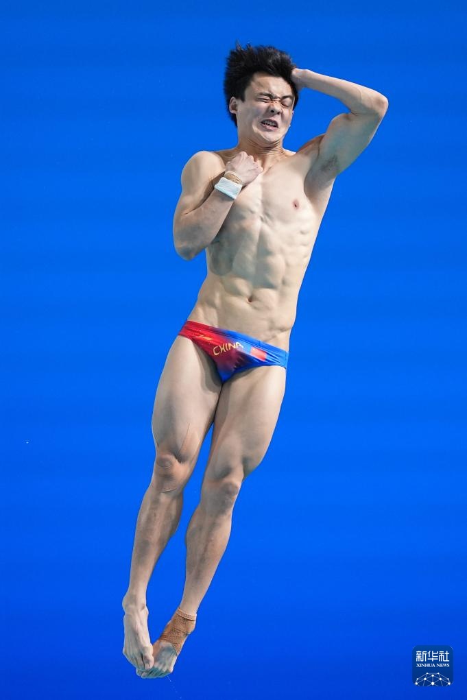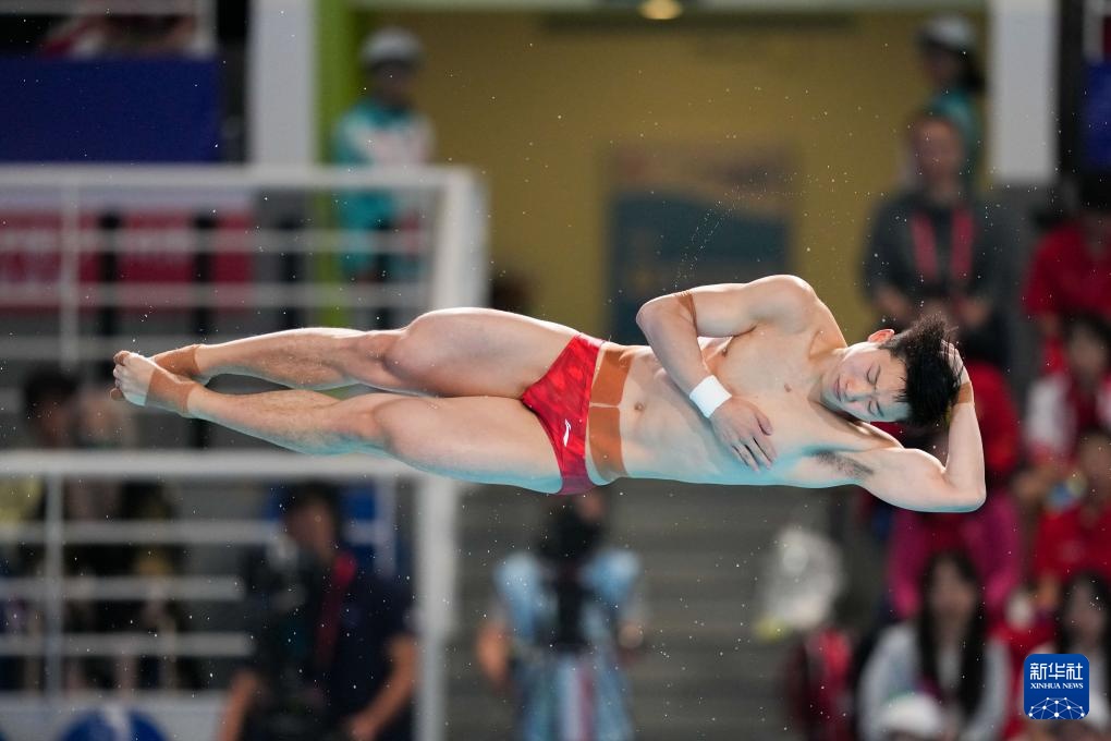 11月3日,湖北队选手郑九源在男子三米板比赛中。