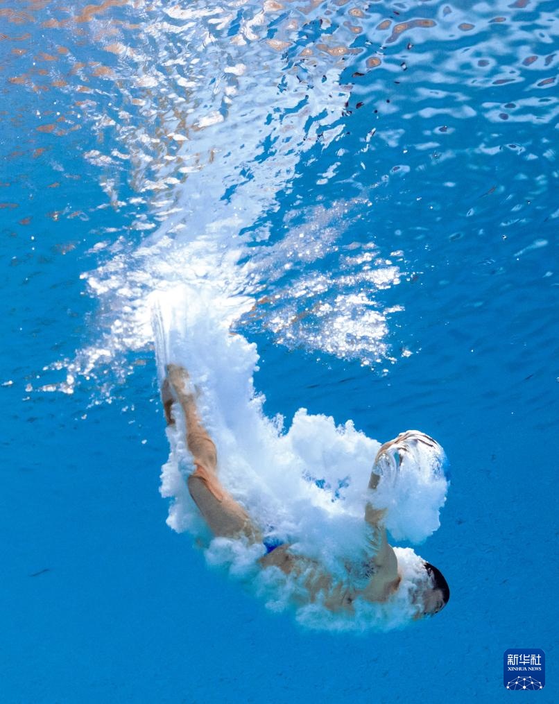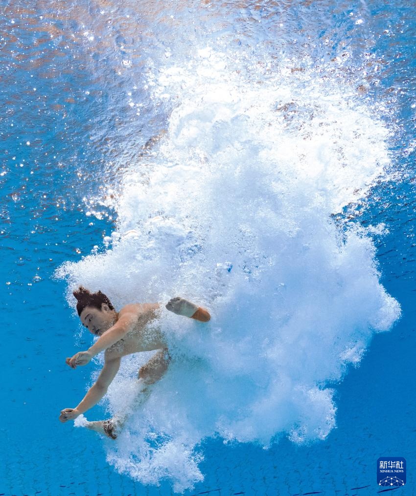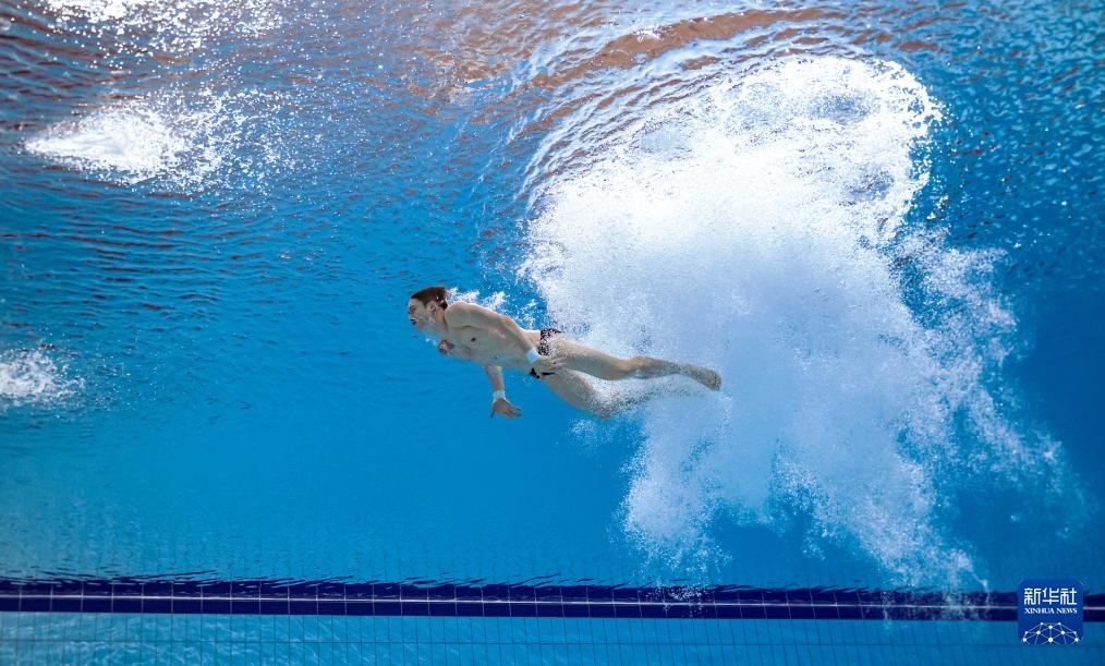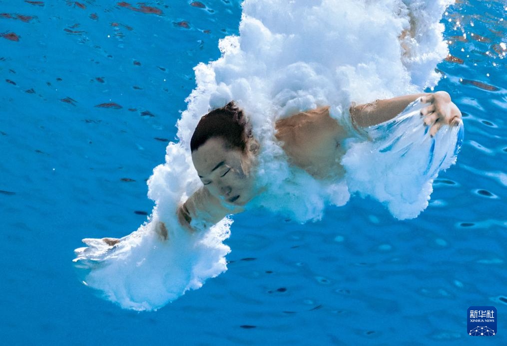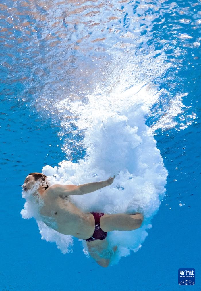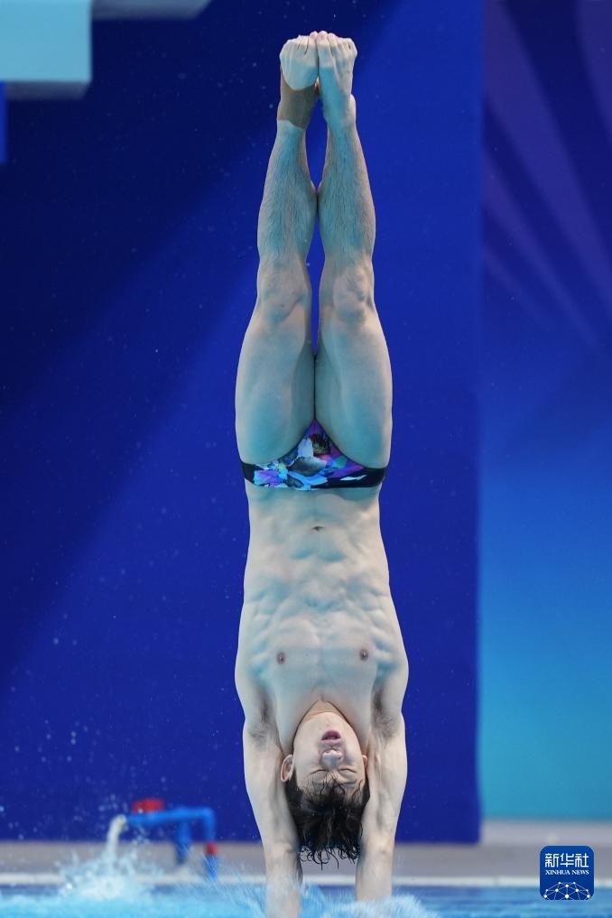 11月3日,湖北队选手郑九源在男子三米板比赛中。