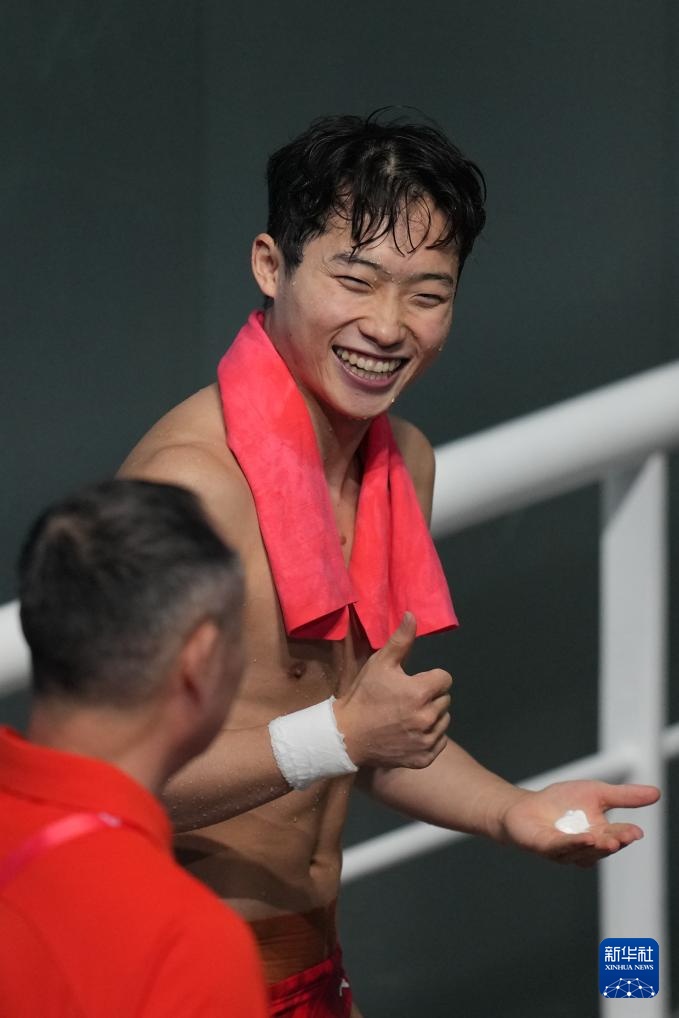 11月3日,湖北队选手王宗源在男子三米板比赛后。