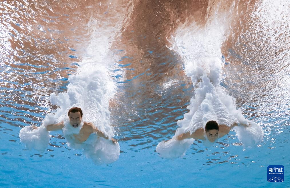 11月3日,湖北队组合程子龙/华文豪在男子双人10米跳台比赛中。