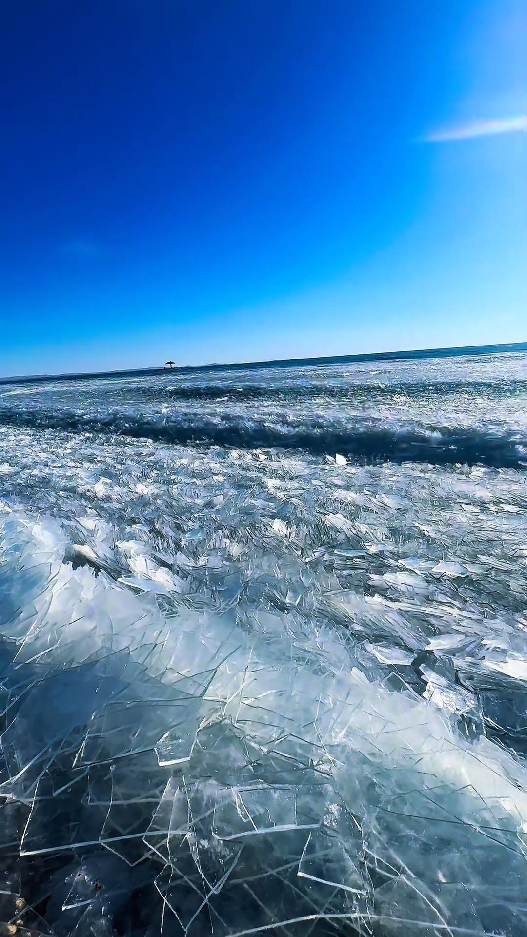 呼伦湖景区一名工作人员告诉极目新闻记者,“跑冰排”是呼伦湖的特色景观,每年湖面开始冰封和来年开春湖面融冰期间都会出现,“从现在到12月月底湖面完全结冰前,都有可能看到”,湖面结冰后,湖水被风吹动对冰层产生冲击,水流推动浮冰向岸边堆积从而形成“跑冰排”现象,“开春时的‘跑冰排’甚至可以堆到1米多高。”