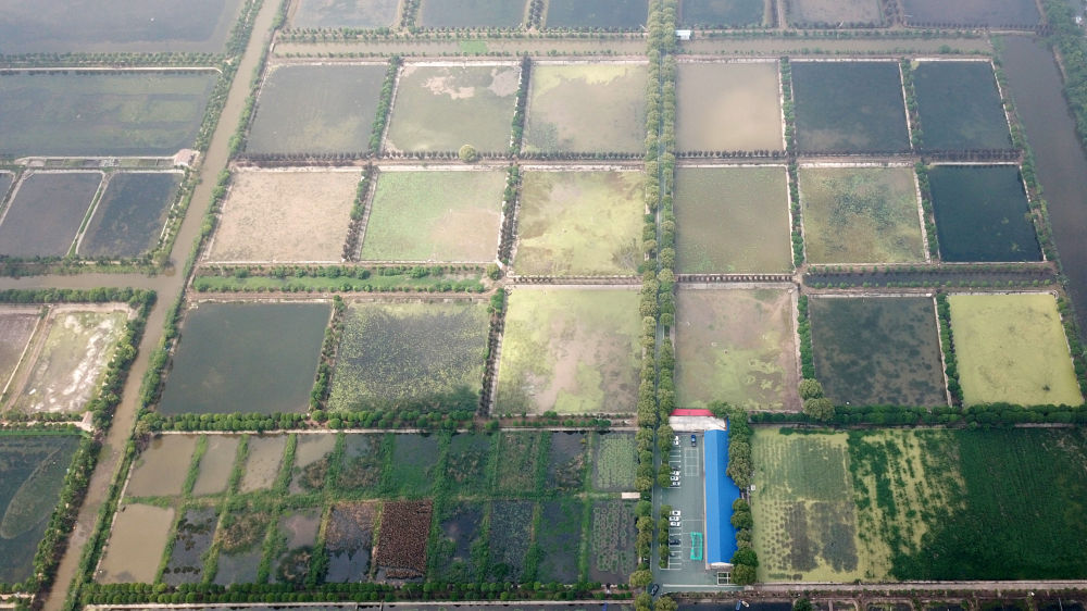 这是大通湖水生植物产业示范园,园内种植了多种水生植物(无人机照片)。新华社记者 陈振海 摄
