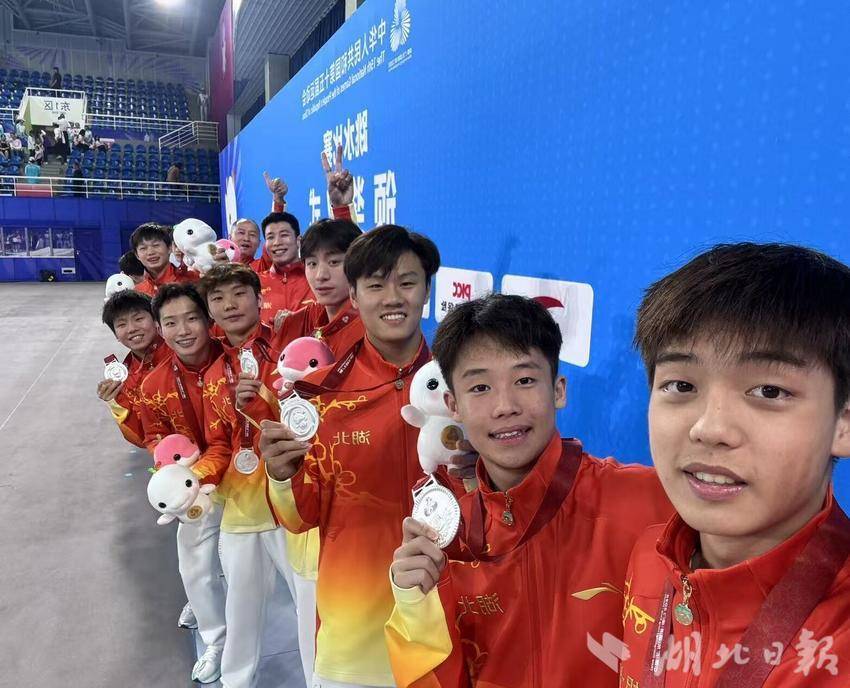湖北日报客户端讯(通讯员许靖、方立俊)北京时间11月3日晚,第十五届全国运动会跳水项目男子团体决赛在广东奥体中心游泳跳水馆落下帷幕。由奥运冠军王宗源领衔的湖北队以2745.73分的总成绩夺得银牌,创下湖北跳水在全运会男子团体项目上的历史最佳战绩。