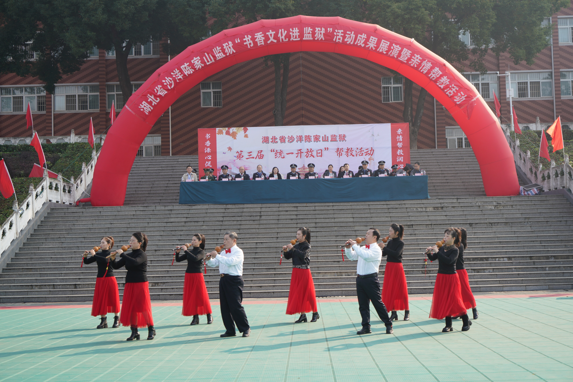主会场内,沙洋陈家山监狱民警、监狱关工委、沙洋县文联带来了精彩的文艺演出。共同表演了葫芦丝演奏及配乐诗朗诵《唱支山歌给党听》《当书香越过高墙》《读中国》等节目,深情表达了对祖国的热爱,激发服刑人员的爱国之情。服刑人员还进行了三项竞赛成果展示和队列歌咏表演,展现出良好的改造状态。