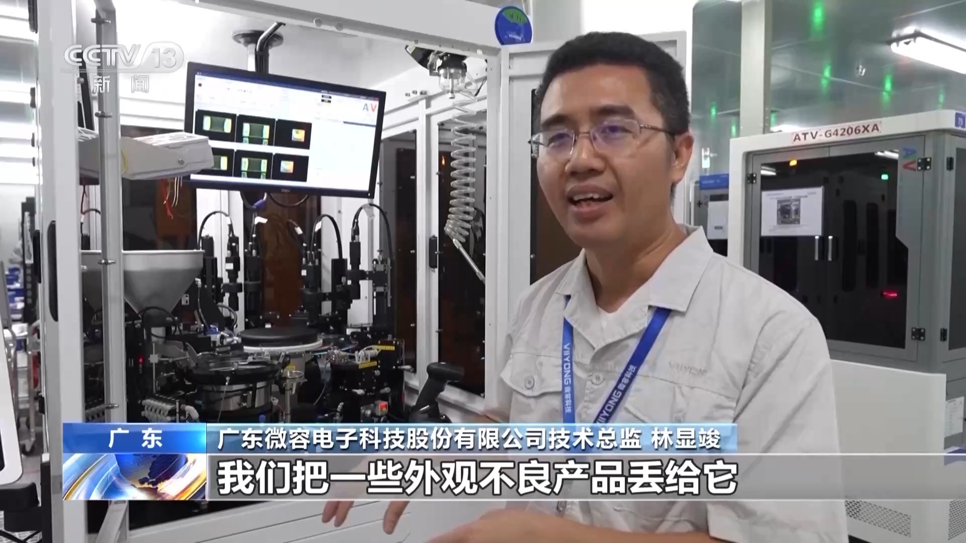 广东微容电子科技股份有限公司技术总监 林显竣:我们把一些外观不良产品丢给它,它自己会拍照判断,这个是好的这个是坏的,它又不断学、不断积累,对一些缺陷的分辨率会更高。