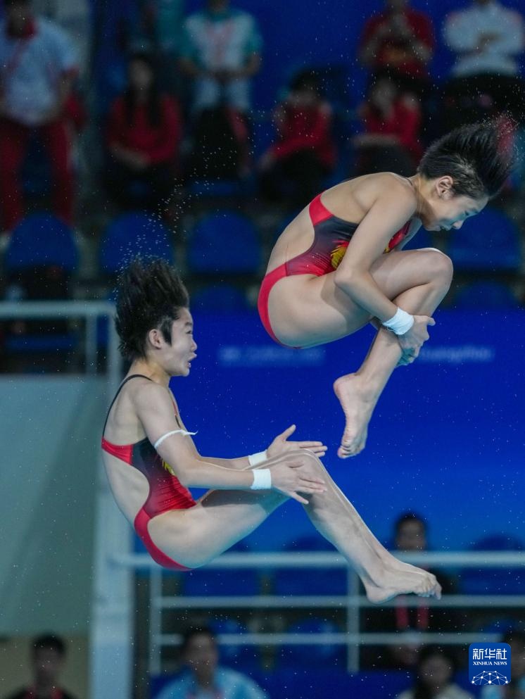 当日,第十五届全国运动会跳水女子双人10米跳台预赛在广州市奥体中心游泳馆举行。
