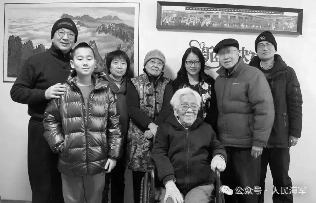 101岁生日时,萨本茂及其保姆(左三)和好友全家合影留念