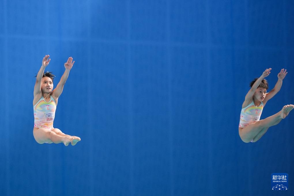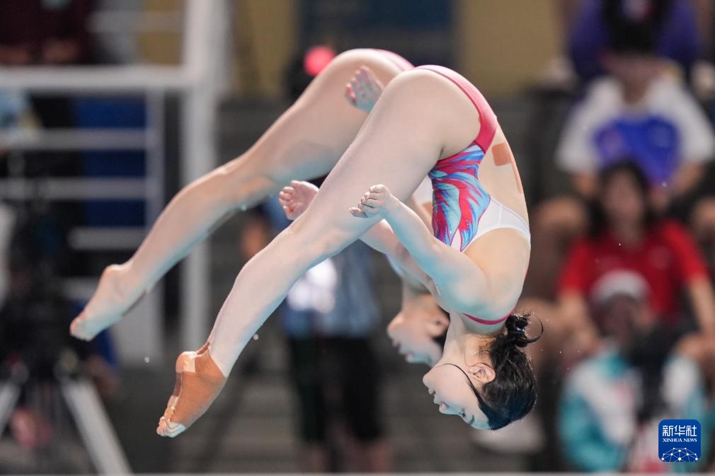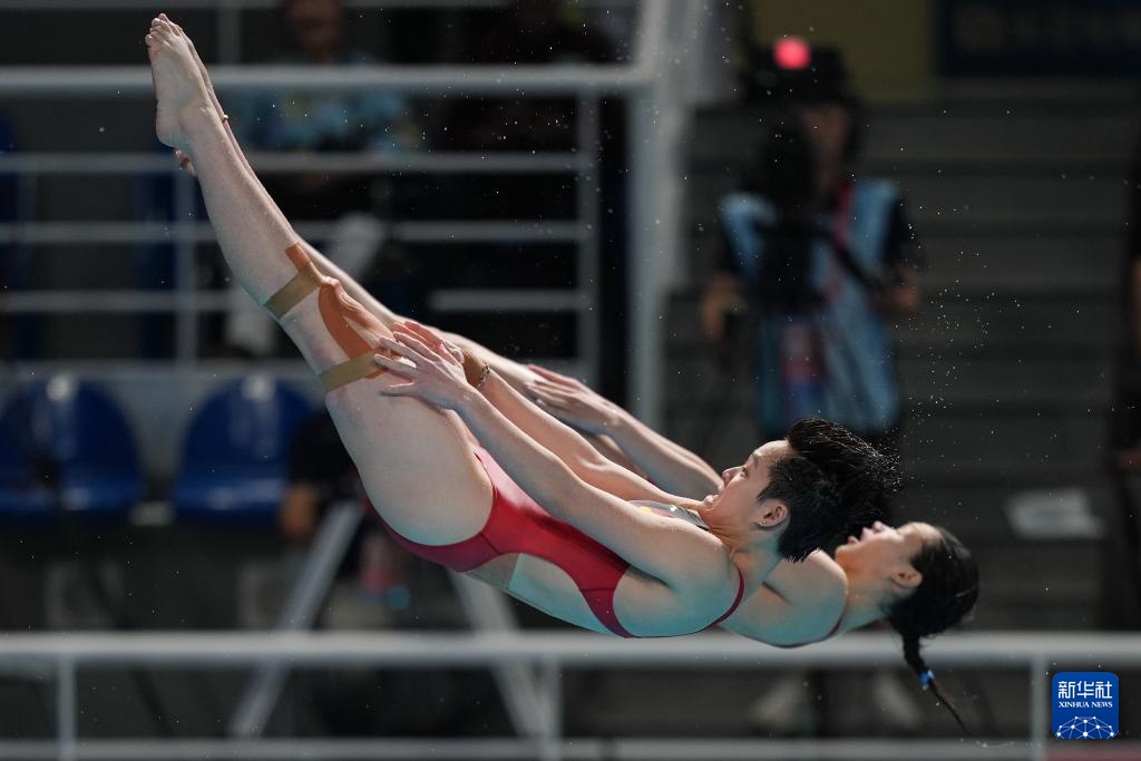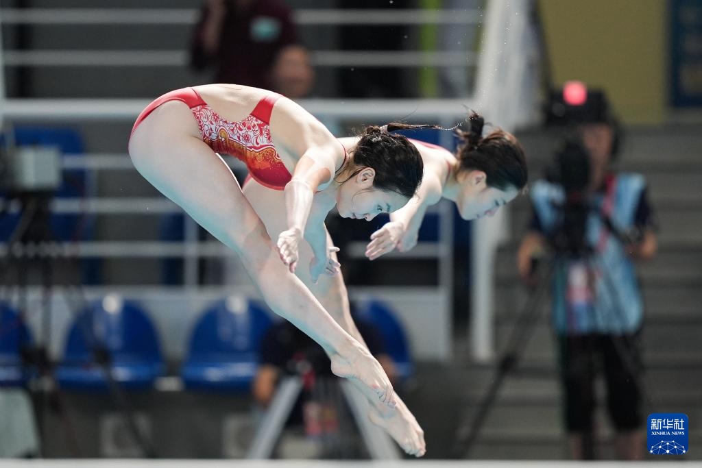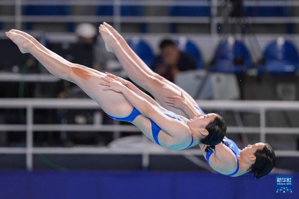 当日,第十五届全国运动会女子双人3米跳板预赛在广州举行。