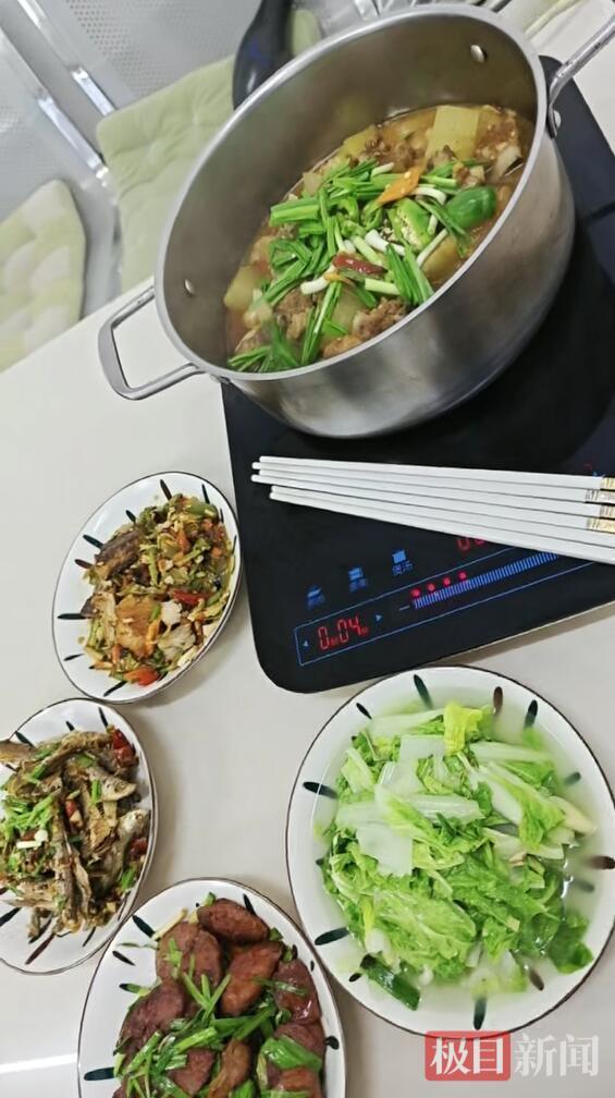 汪德珍说,厨房还特意做了松滋地方风味的排骨火锅,还炒了青菜、腊肠和麻辣鱼,“也让外地客人感受一下我们的风味美食”。