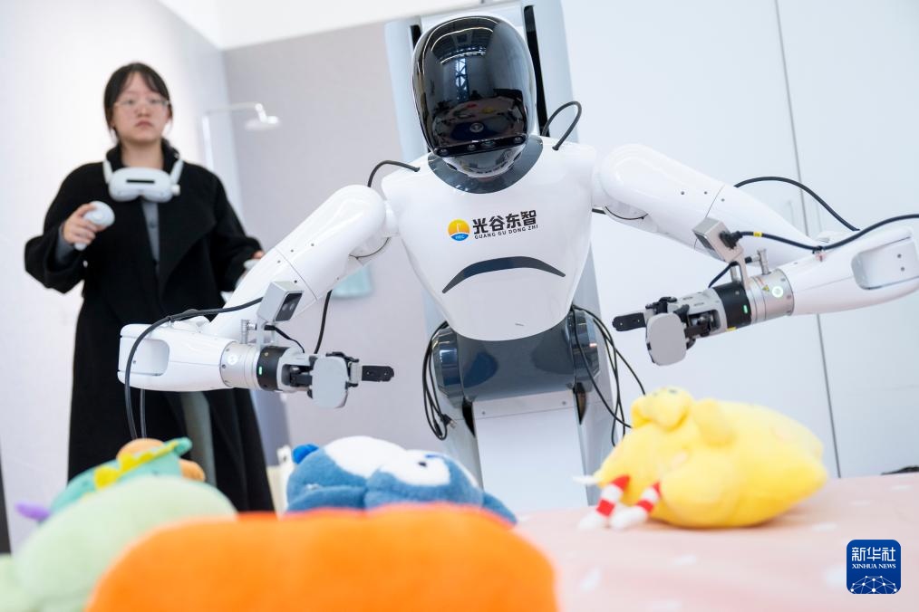 11月6日,在湖北人形机器人创新中心,人形机器人数据采集员在进行数据采集工作。
