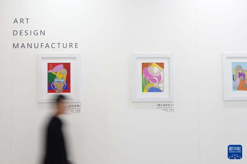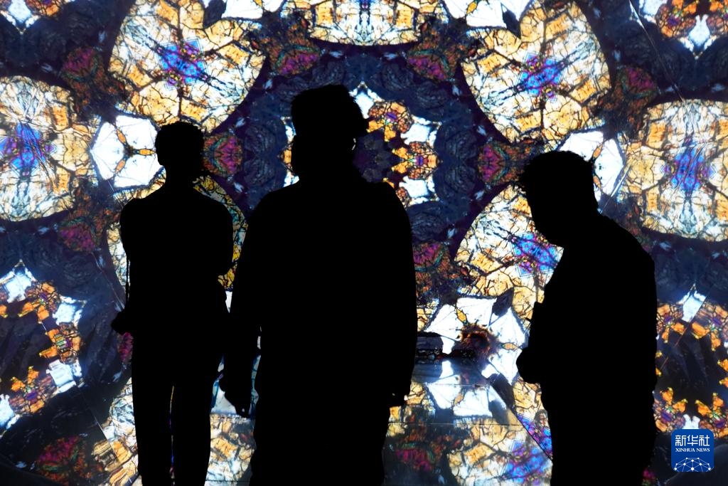 11月6日,一名参观者路过华工科技激光科技馆内由激光技术二次创作的绘画作品。