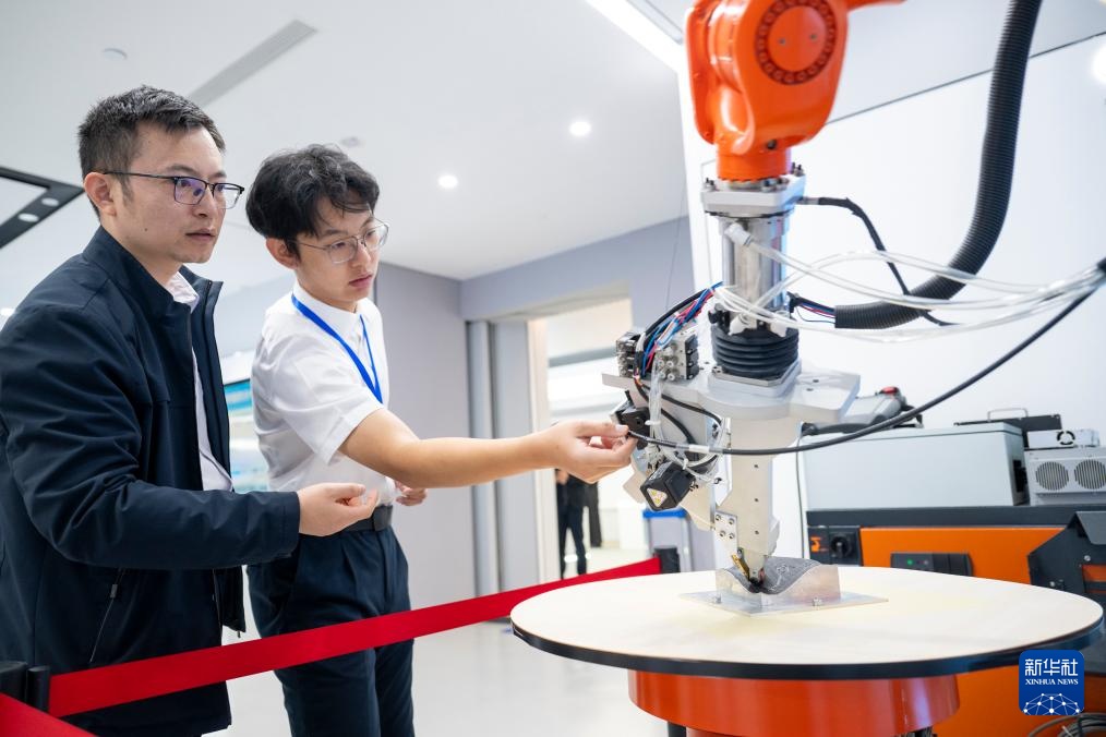 11月6日,在武汉产业创新发展研究院,工作人员展示增材制造机器人。