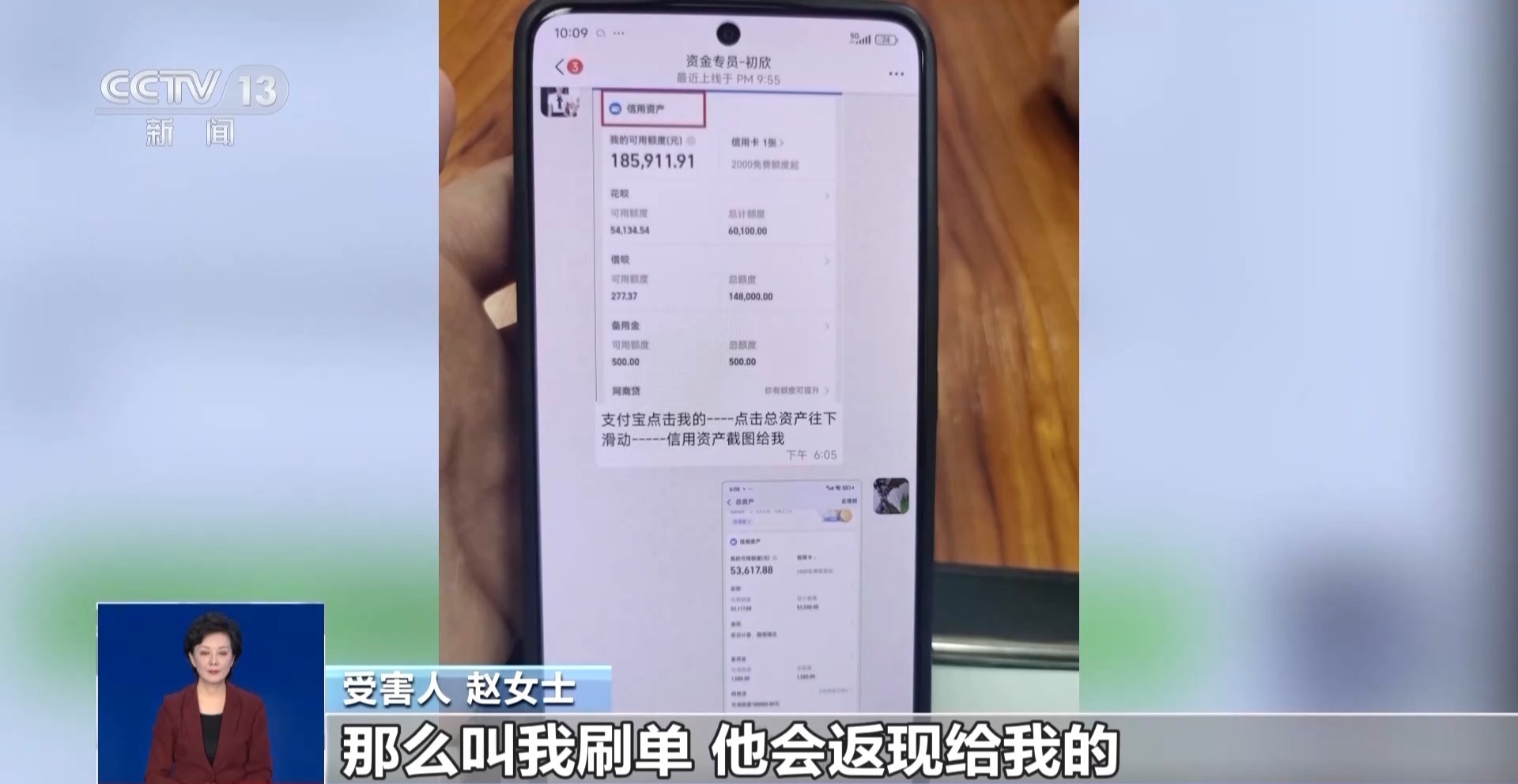 受害人 赵女士:他说他的软件是工商里面他已经备注的,里面的群聊什么东西都是比较安全,叫我放心,叫我刷单,他会返现给我的,所以我刷了一段时间,他返给了我50块钱,里面还有客服提示我,叫我继续再刷。因为他已经50块返给我,我相信他,我有点贪小便宜嘛,这种事情我以前也没有碰到过,所以我一直刷刷刷。