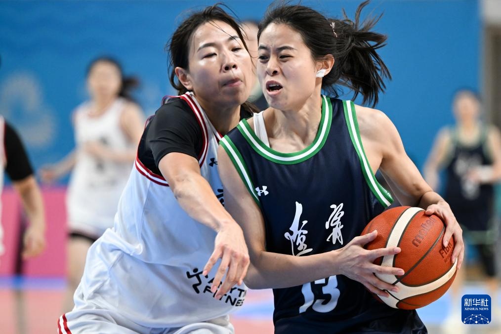 11月7日,辽宁队球员付金秋(右)在比赛中带球突破。