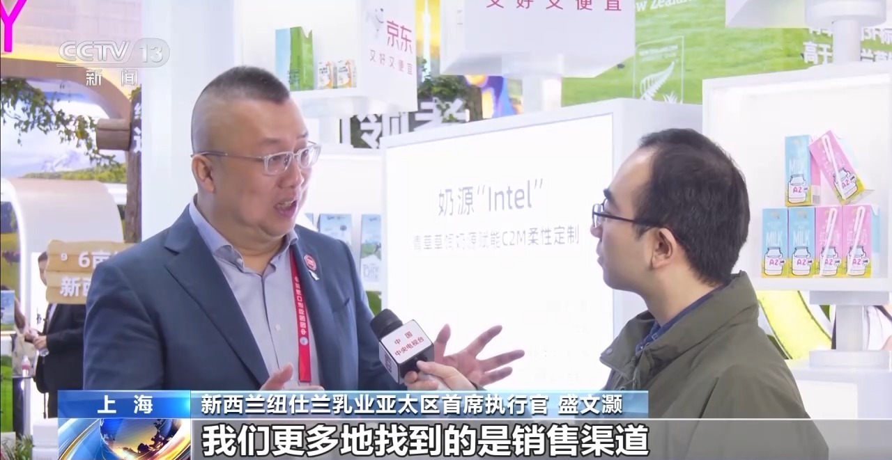 新西兰纽仕兰乳业亚太区首席执行官 盛文灏:前面几届进博会,我们更多地找到的是销售渠道,比如说商超,而这届进博会我们有一个新的惊喜,就是参展商之间产生了化学反应。