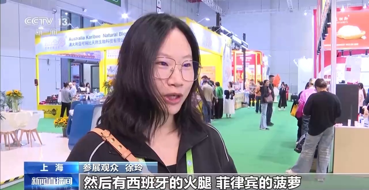 观众 徐玲:这一圈逛下来是非常丰富的,有西班牙的火腿、菲律宾的菠萝,都是特产,老百姓的餐桌越来越丰富。