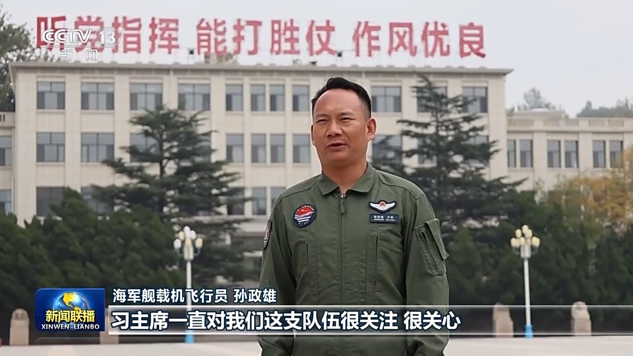 海军舰载机飞行员 孙政雄:习主席一直对我们这支队伍很关注、很关心,这次专门到战位上视察,详细询问新型舰载机性能怎么样、训练难点在哪里,肯定我们的勇气和成绩,勉励大家科学训练、刻苦训练、安全训练。我们一定牢记嘱托,发扬大无畏精神,苦练精飞,驾驭“飞鲨”挺进深蓝,搏击海天。