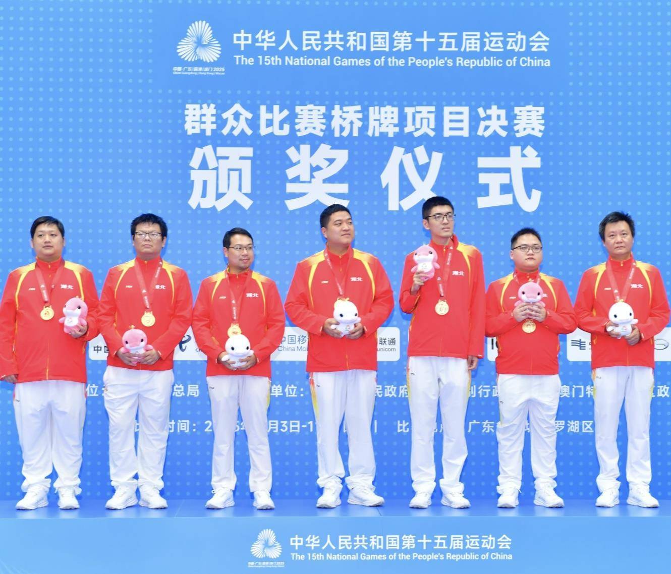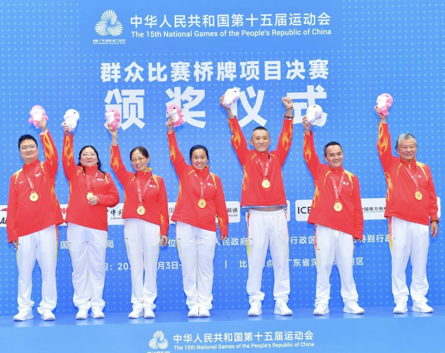 湖北日报讯(记者马明玉、通讯员陈文适)经过五天的激烈争夺,第十五届全运会群众比赛桥牌项目于11月7日在深圳市罗湖区深圳棋院收官,在决出的总计6枚金牌中,湖北队斩获混合团体和青年男子团体双冠,并实现我省桥牌项目全运会金牌零的突破。