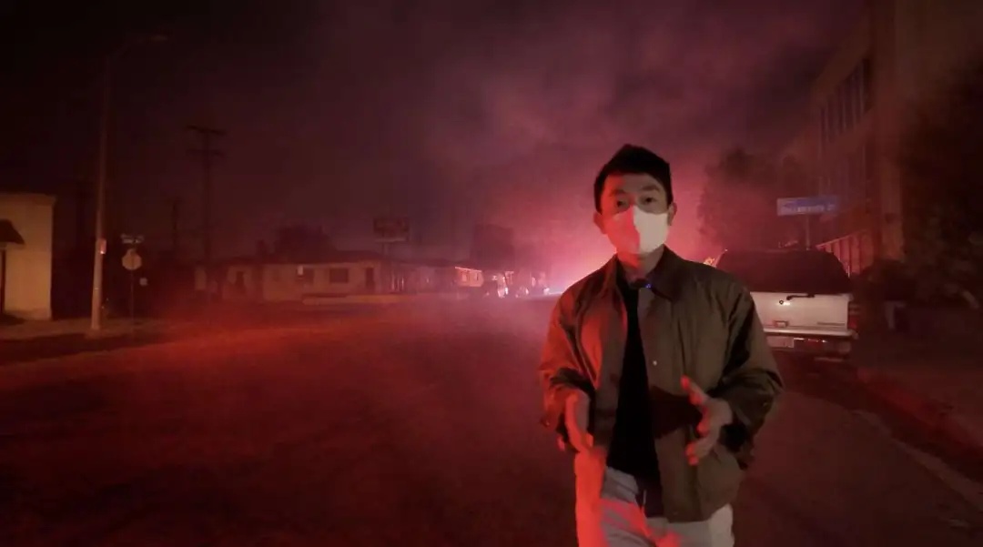 今年1月,我曾直击洛杉矶的山火。当时的洛杉矶市区,空气中浓烟味呛鼻,到处都是飞溅的火星,还有建筑发出爆炸声。放眼望去,废墟里一根根“壁炉”矗立。每一根,都代表曾经的一户人家。后来我才知道,这里7000多座民居被烧掉。