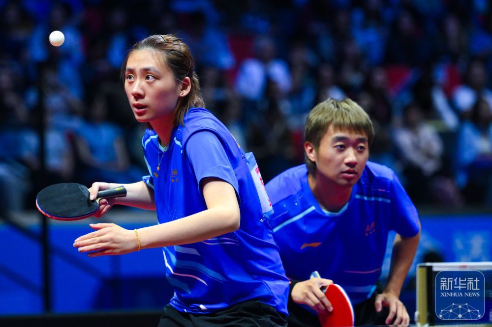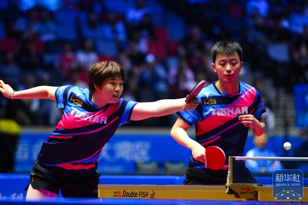 ↑ 黑龙江队组合徐瑛彬(左)/范姝涵在比赛中。他们0比3不敌江苏队组合陈垣宇/蒯曼。