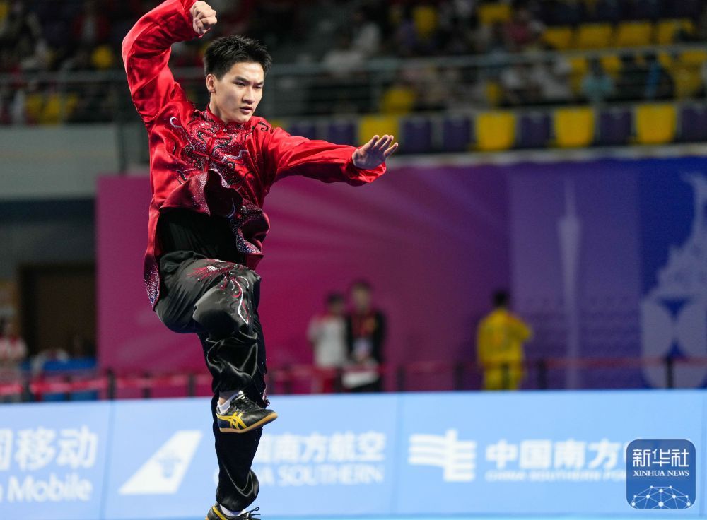 ↑ 广西队选手唐陈鲲在男子太极拳比赛中。 新华社记者 晋美多吉 摄