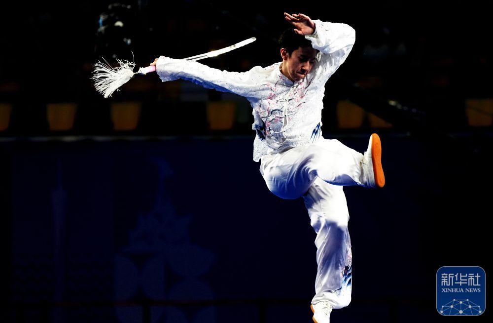 ↑ 山东队选手纪豪在太极剑比赛中。最终,他获得季军。 新华社记者 晋美多吉 摄