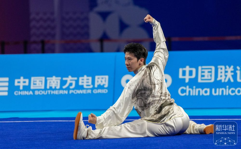 ↑ 山东队选手纪豪在男子太极拳比赛中。 新华社记者 晋美多吉 摄