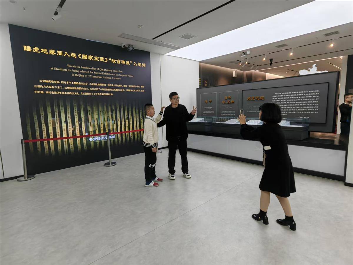 当日,在云梦县博物馆、云梦县睡虎地考古遗址中心相关展厅,参加活动的嘉宾在简牍墨迹与数字影像交织的空间中,感受秦律木牍的千年智慧与现代诠释。