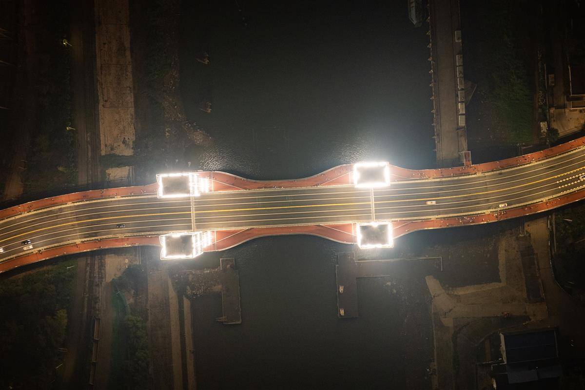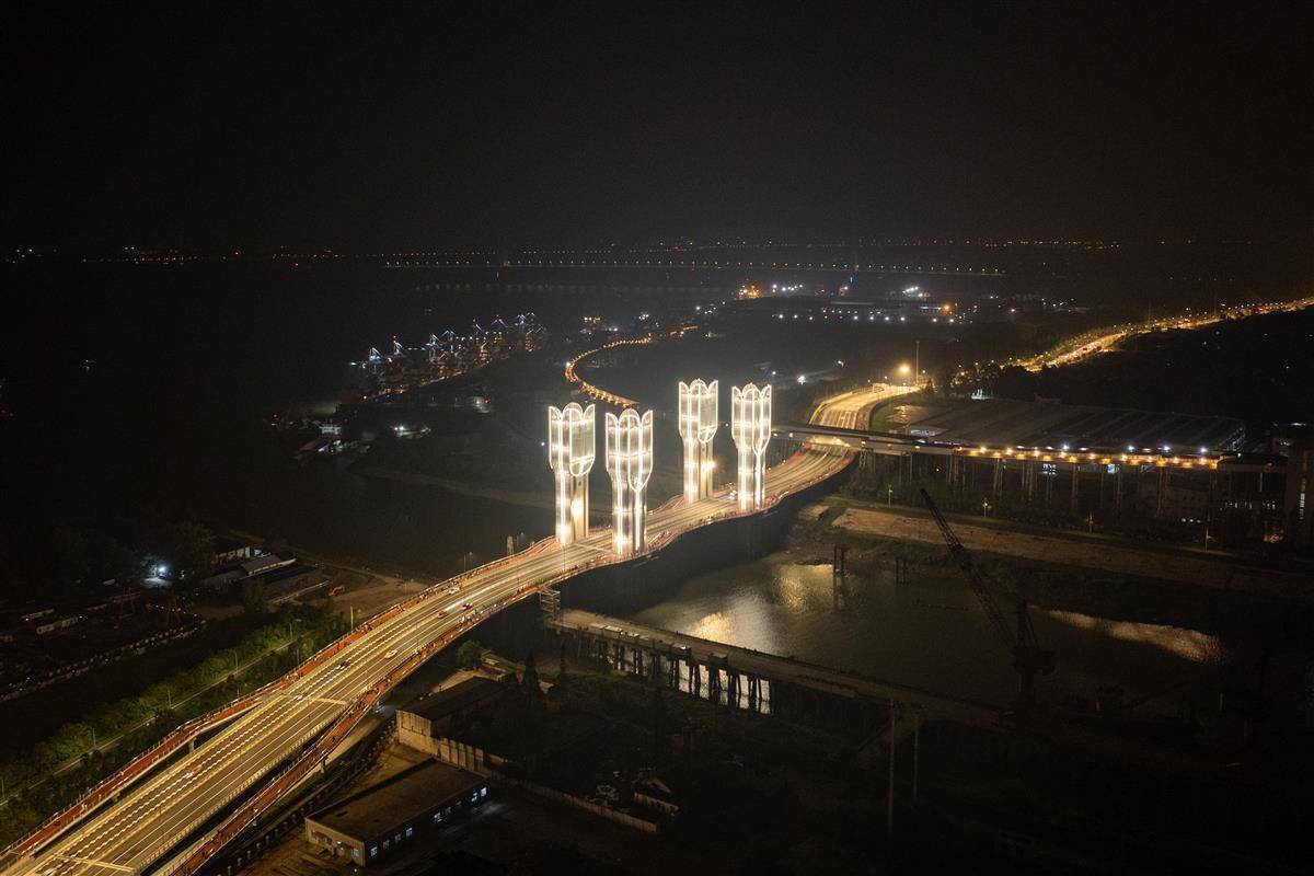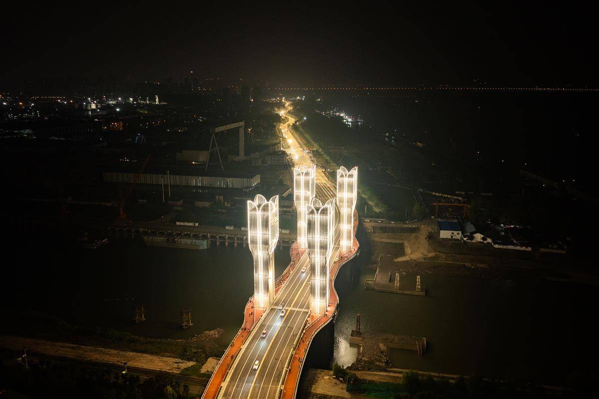 桥梁采用升降式开启设计,这一创新方案相比建设3公里长的传统“一跨过河”方案,大幅节约了建造成本与空间占用。在通航模式下,桥面最快9分钟即可提升至27米最高点,相当于九层楼的高度,确保桥下通航净空达到35米,足以满足武钢工业港5000吨级船舶的通行需求。这一设计不仅解决了航运与陆运的矛盾,更成为连接武汉中心城区与化工新区的重要纽带,将两地车程从1小时缩短至约15分钟,交通效率提升显著。(湖北日报全媒记者 何宇欣 实习生 曹若妍 陶晨曦 摄)