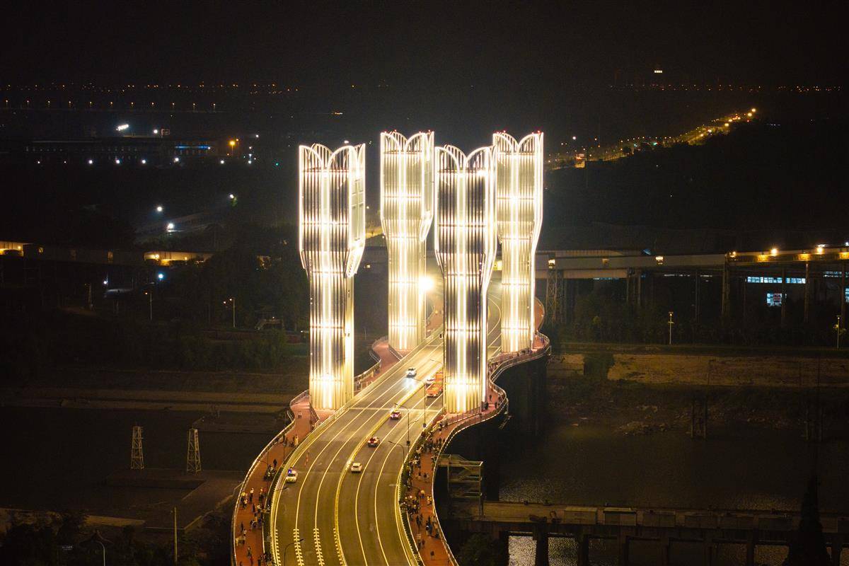 右岸大道开启桥在夜色中灯火璀璨。
