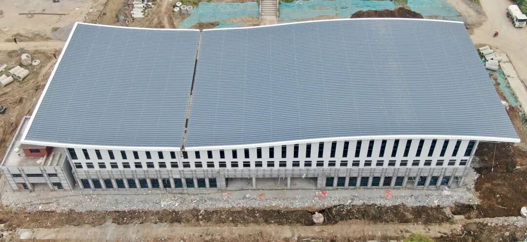 绿色建造理念同步贯穿项目全过程。俯瞰园区,大片光伏板整齐排列,在阳光下熠熠生辉,将太阳能持续转化为清洁电能。项目负责人王文泽说,园区内已有三栋建筑的屋顶铺设完分布式光伏系统,所发电力将有效补充园区的日常用电。施工区域设置的智能监测系统,实时显示噪声、粉尘等数据,一旦超标立即预警,实现绿色施工全程可控。
