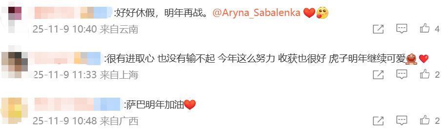 尽管多次错失重要比赛的冠军,但事实上,萨巴伦卡在本赛季的成绩单十分抢眼,她在2025年夺得了4个冠军,9次打入决赛,胜场数高达63场,这些数据都领跑巡回赛全体女球员。她全年稳坐世界第一、连续两年加冕年终第一,今年的总奖金也高达1500.85万美元(约合人民币1.07亿元),超过了小威在2013年创下的单赛季1238.58万美元的纪录。