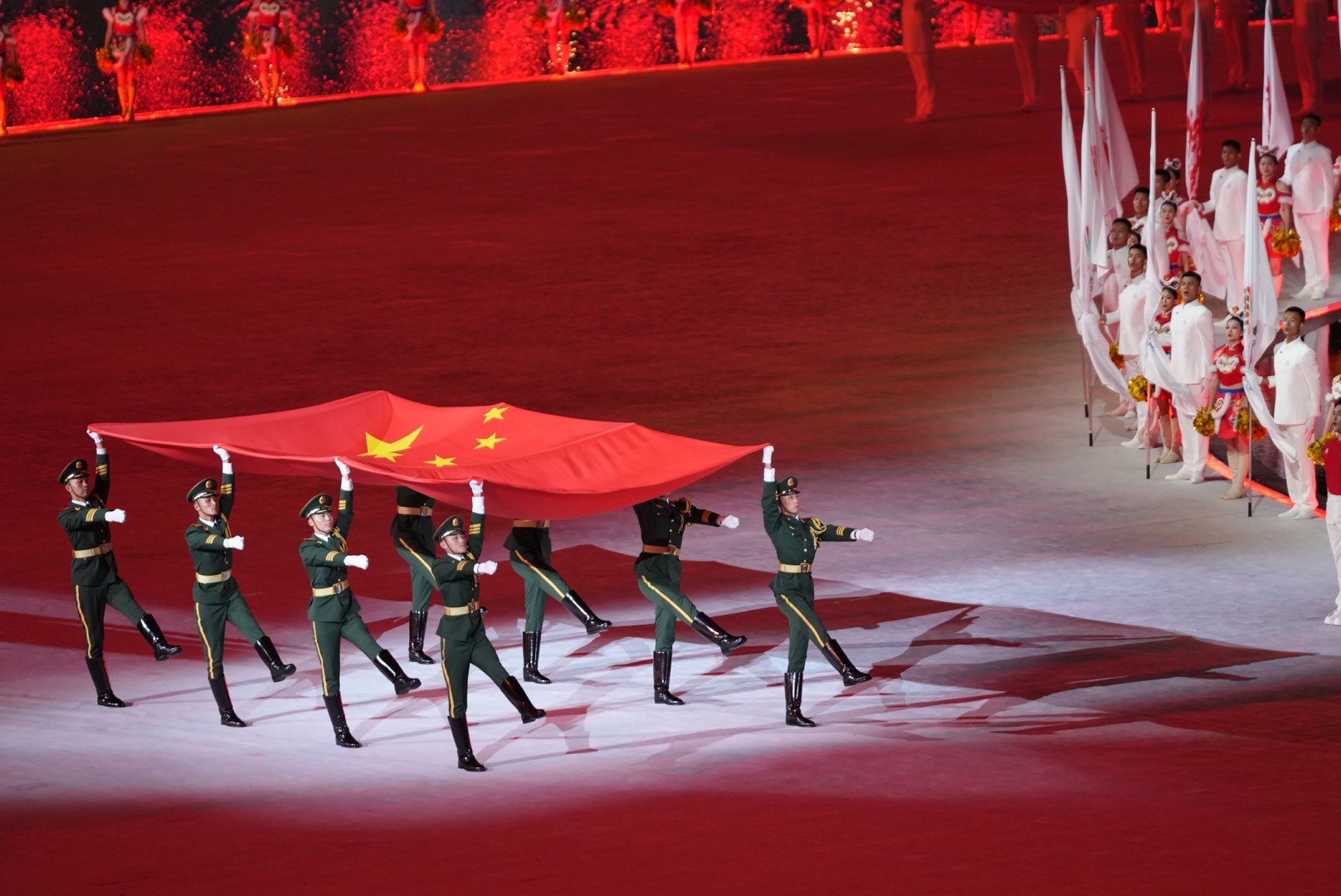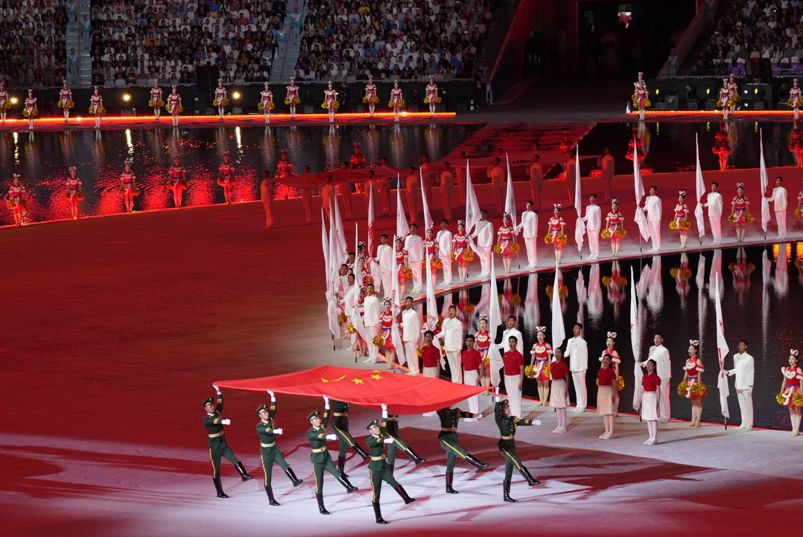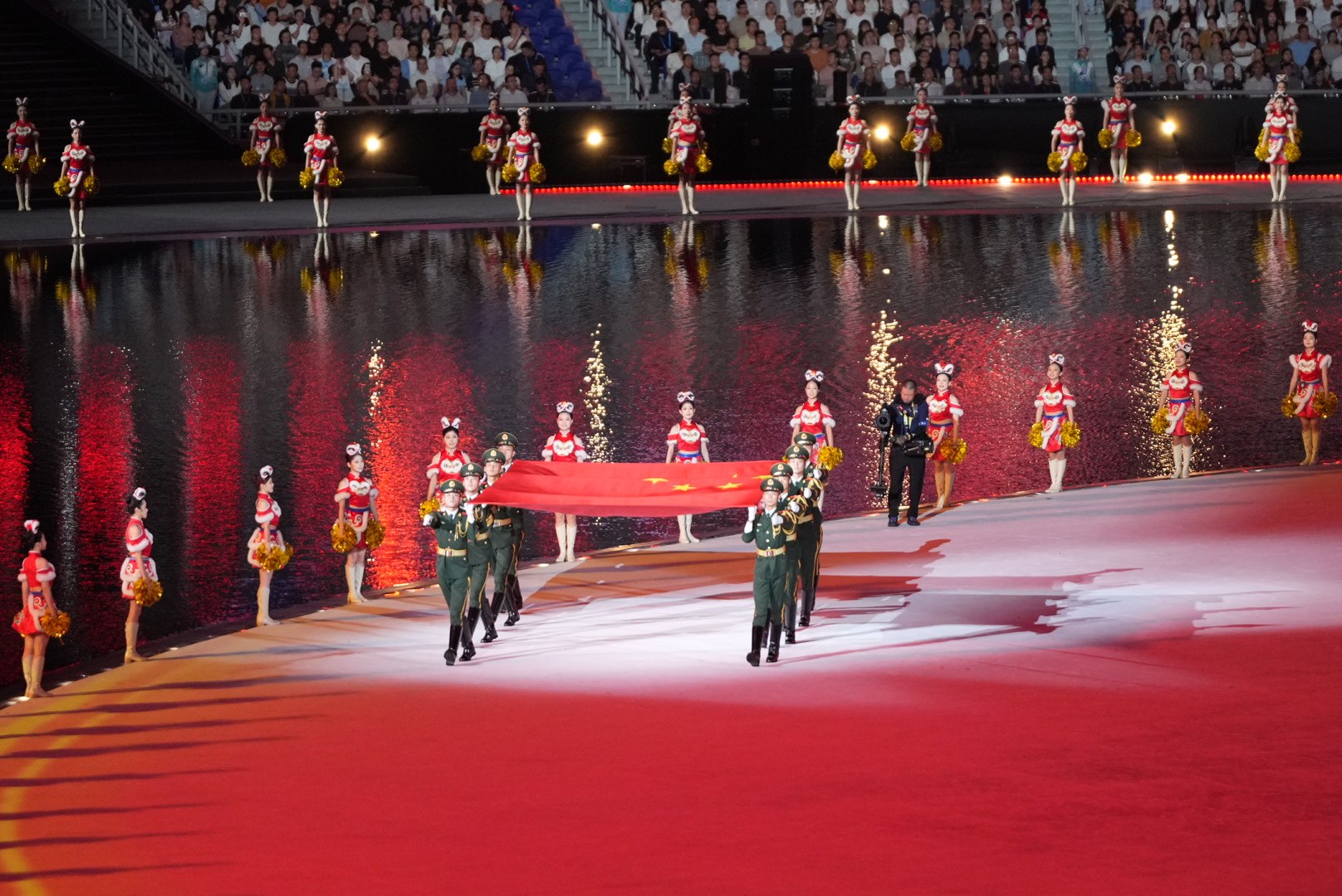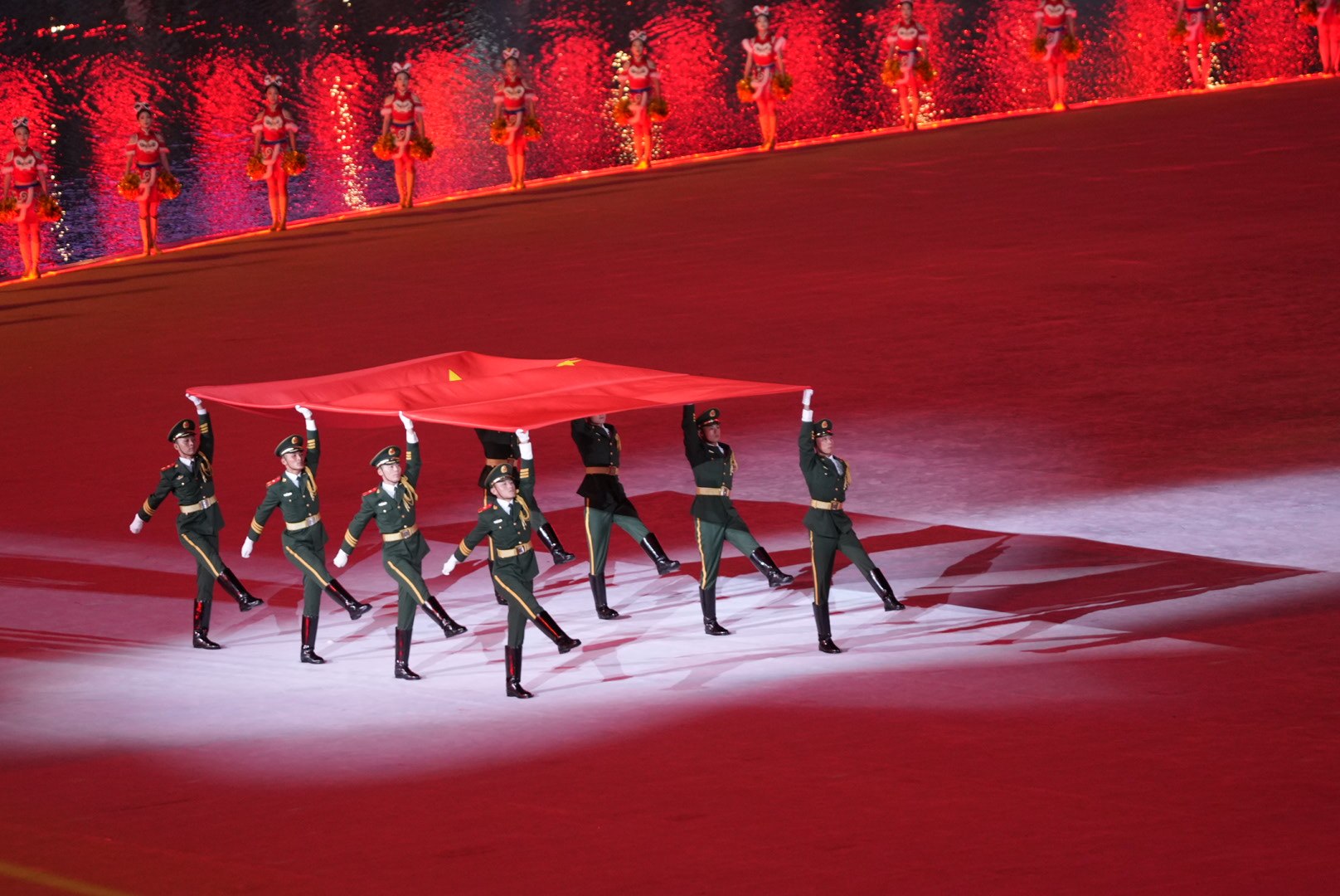 中华人民共和国第十五届运动会开幕式11月9日晚在广东省广州市隆重举行。五星红旗在歌唱祖国BGM中入场,现场高清大图,一起来看。