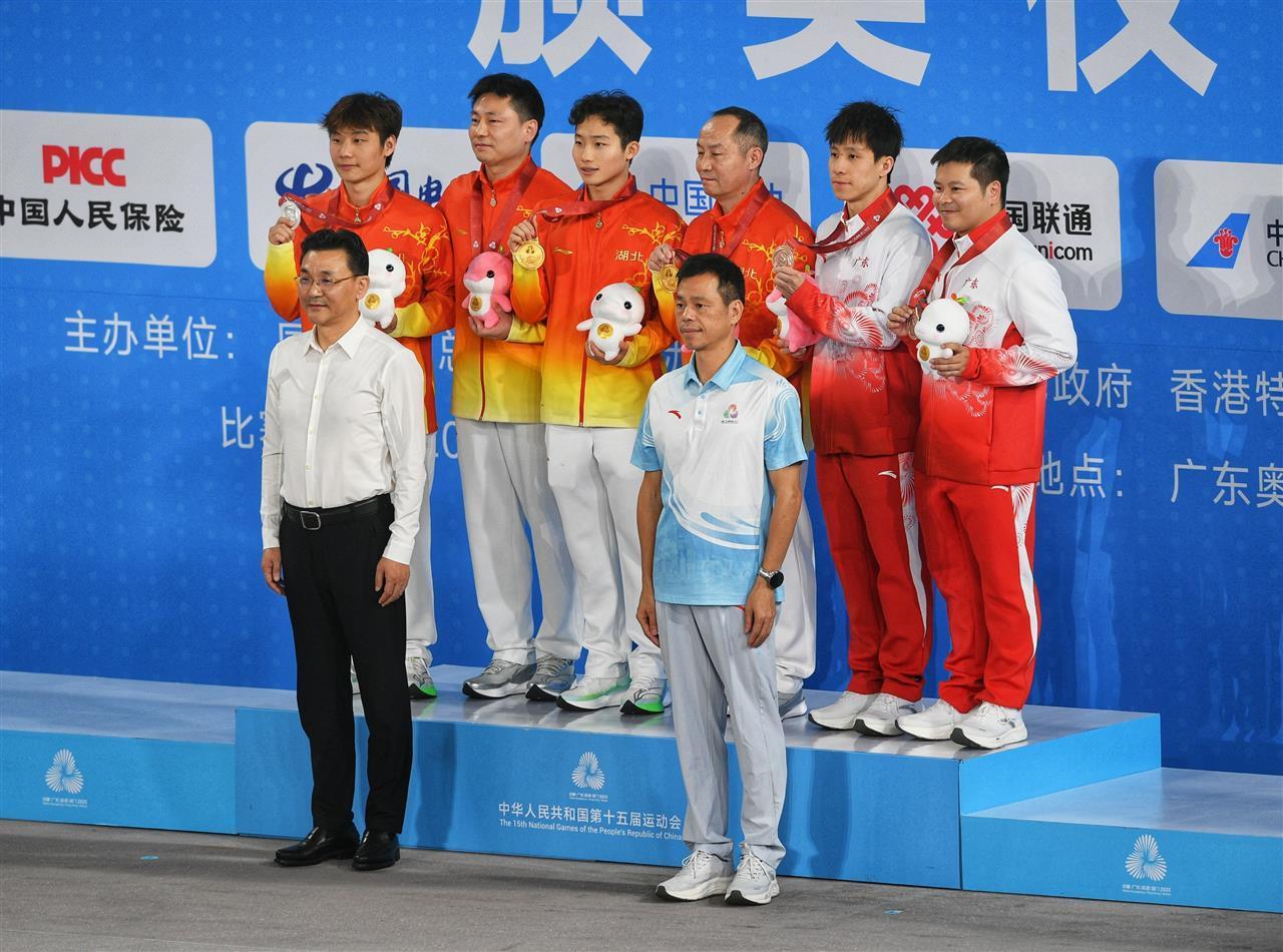 11月10日下午,第十五届全运会跳水男子3米板决赛在广东奥体中心游泳跳水馆举行。湖北选手王宗源、郑九源包揽该项目金银牌,这是王宗源在本届全运会斩获的个人第二金,也是湖北体育代表团在本届全运会获得的第四金。