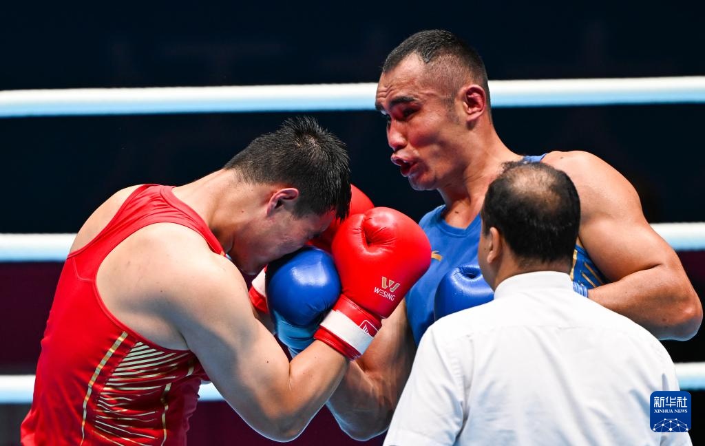当日,在深圳进行的第十五届全国运动会拳击男子92公斤以上级半决赛中,广东队选手巴依克吾孜·达那别克战胜山东体育学院队选手赵龙凯,晋级决赛。