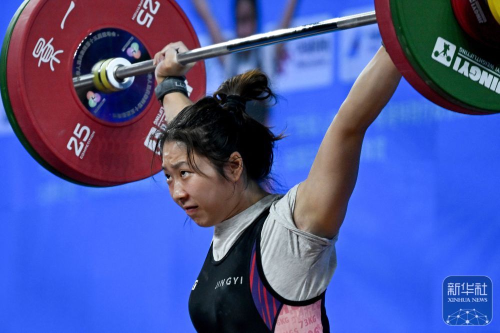 ↑ 福建队选手魏婷娜在抓举比赛中。