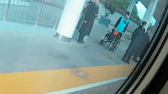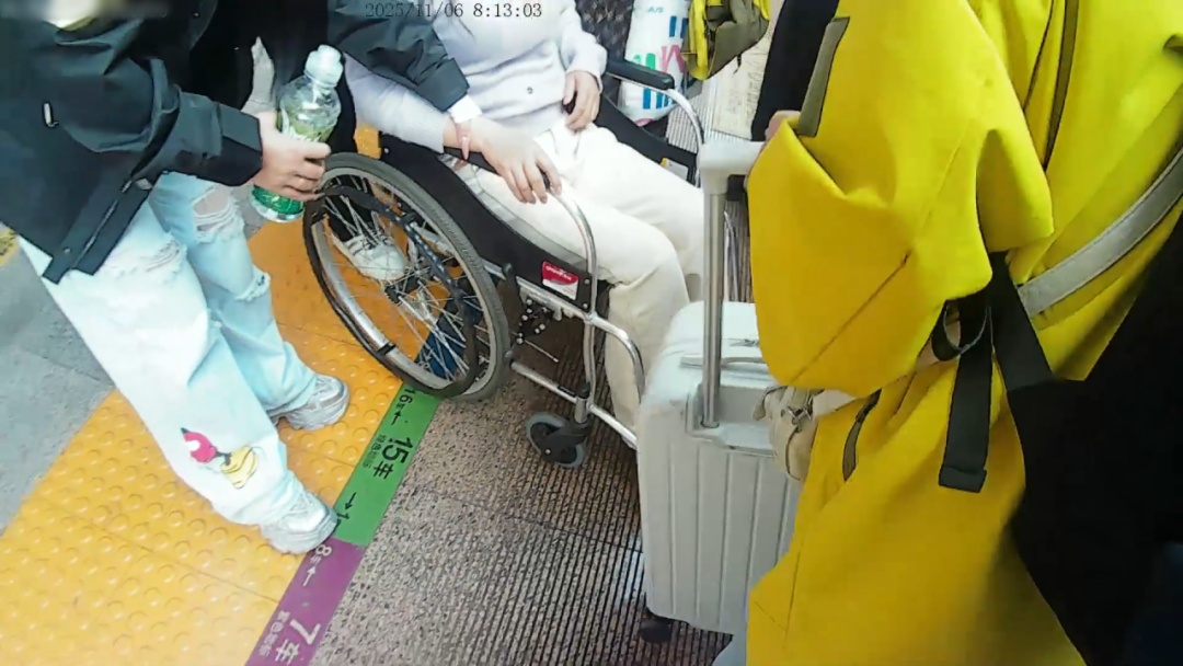 8时13分,列车稳稳停靠在楚雄站。车站工作人员早已推着轮椅在站台等候,列车员将旅客和行李一同护送至站台。这场“生命接力”仅用1分钟便完成了交接。
