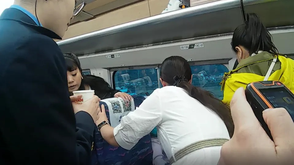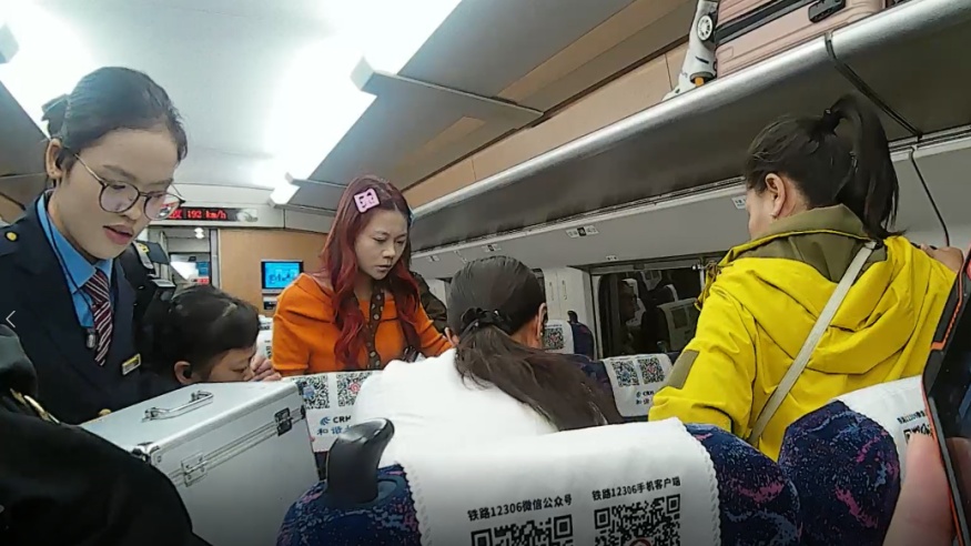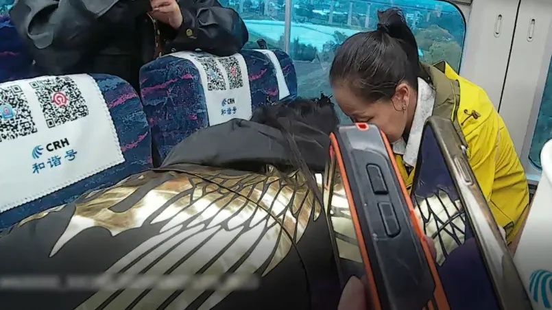 当天7时40分许,一位旅客向正在5号车厢巡视的列车员黄永红反映自己的同伴突发不适,黄永红立即用对讲机通知列车长唐雨晴到场处置。