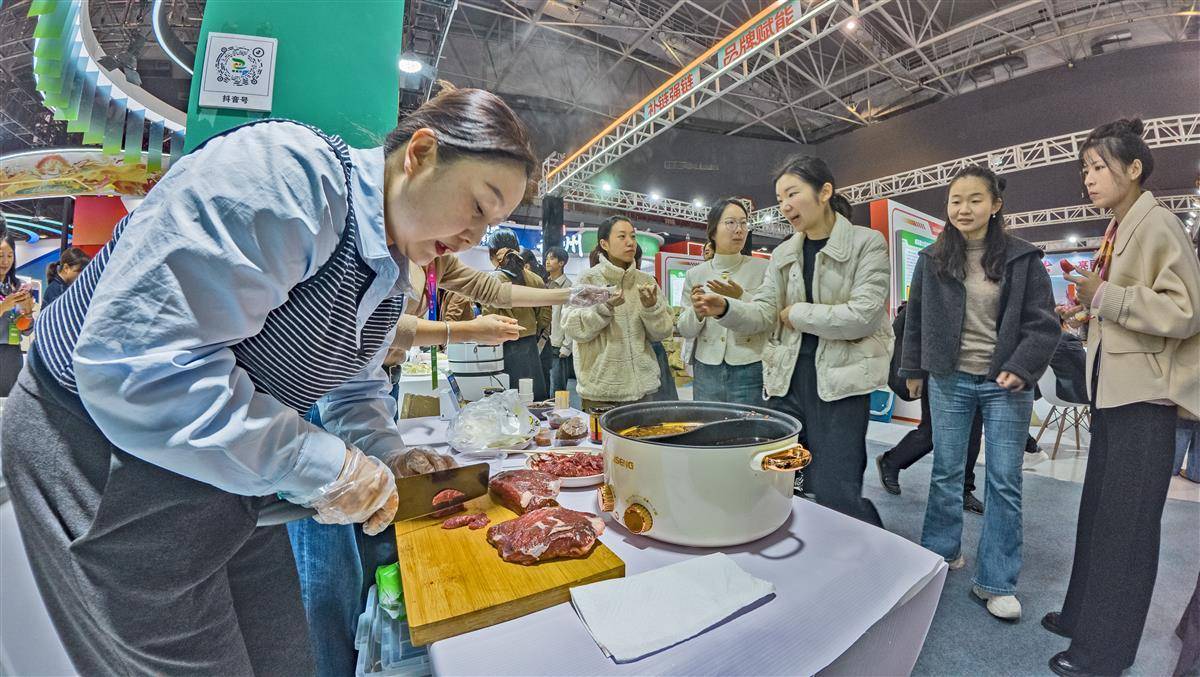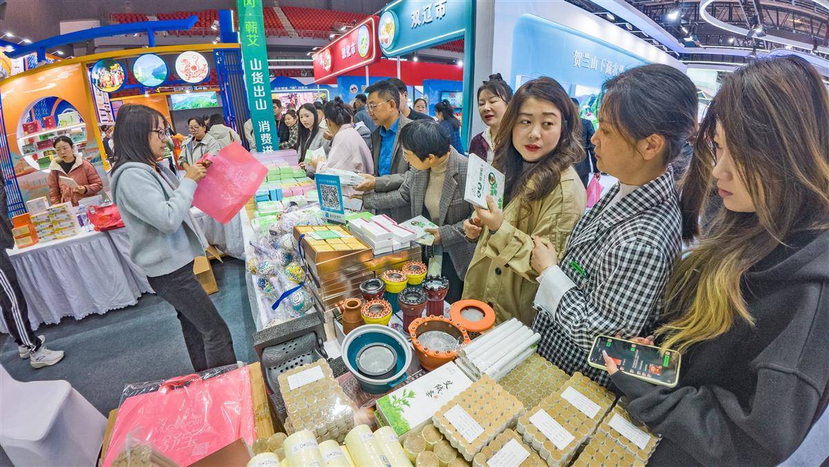 11月12日,2025全国农商互联暨乡村振兴产销对接活动”在宜昌奥体中心正式开幕。本次活动以“补链共链 品牌赋能 循环振兴”为主题,为期两天,将搭建起优质农产品产销对接的核心平台,助力乡村振兴发展。活动汇聚了政府部门、行业机构、生产企业与采购商等多方力量,形成产销对接合力。活动现场规划近1万平方米展示区域,重点设置“寻味中国”地域特色精品区、湖北特色产业主题馆及宜昌特色馆三大核心展区,集中呈现乡村振兴战略实施以来各地涌现的农产品新品牌、新成果。内蒙古的牛羊肉、陕西的苹果、湖北的脐橙、云南的普洱茶等来自全国20余个省(区、市)的特色农产在此集中亮相,为采购商和消费者带来一场“舌尖上的盛宴”。据了解,本次活动吸引400多家农产品生产加工企业参展,带来上万款极具地域特色的农副产品,涵盖果蔬、肉食水产、米面粮油等基础品类,更囊括各地老字号、区域公用品牌农特产品、国家地理标志产品及绿色有机食品等高品质选项。与此同时,全国300多家大型农产品批发市场、连锁商超、电商平台及工会集采单位的专业采购商已到场对接,精准搭建起“产地到餐桌”的直通桥梁。(湖北日报全媒记者 刘曙松 摄)