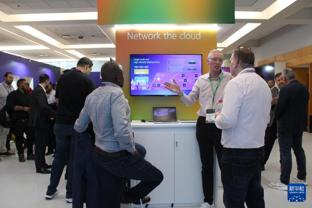 11月11日,在南非开普敦,人们在2025年非洲科技节的非洲通信展上交流。