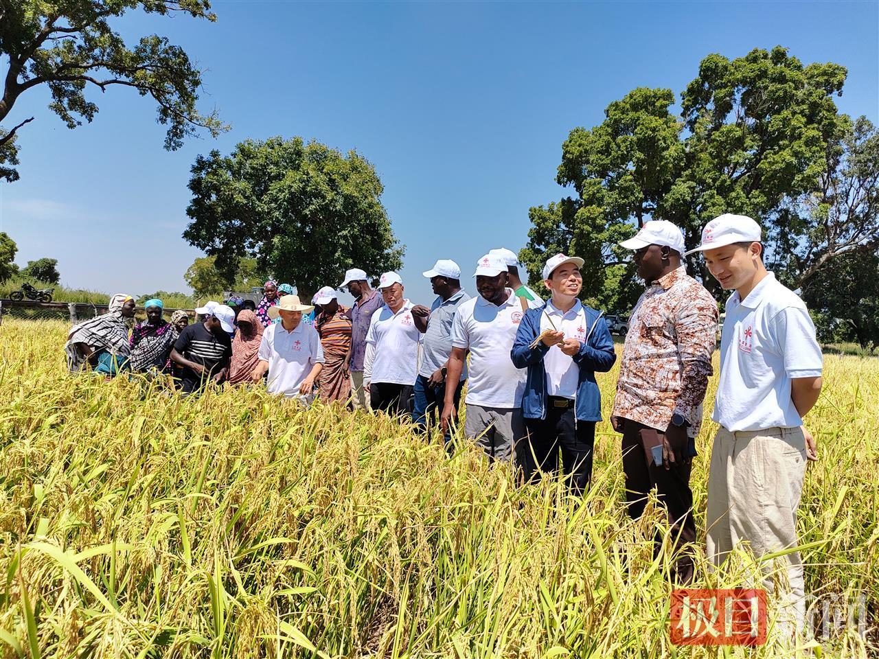 中国援建的布尔比中国水稻品种展示区一片丰收景象