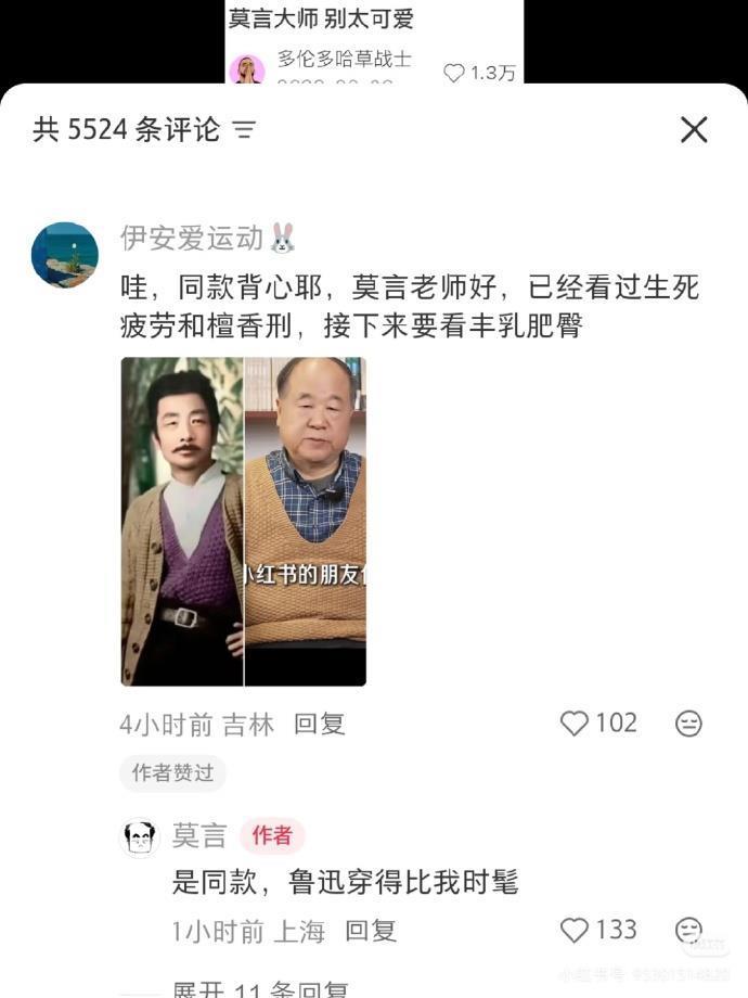 在评论区,网友和莫言各种玩梗,莫言以轻松幽默的话语回复,欢乐不断。